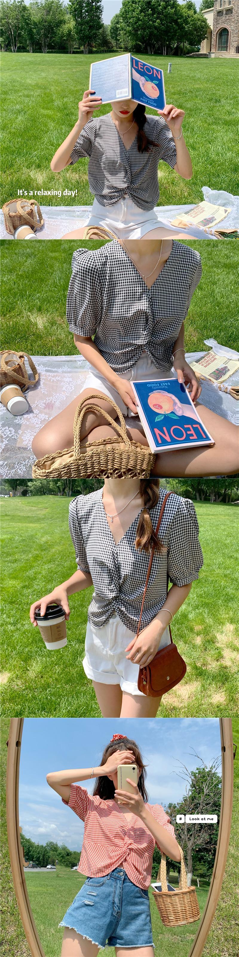 ✞ プリーツクロスシャツブラウスチェック柄ショートスリーブVネック 大人ガーリー スウィート キュート カジュアル ✞ゴスロリ SM ミリ 甘ロリ クラロリ 和ロリ エレガント 黒ロリ 姫ロリ 華ロリ BB-BB0348384