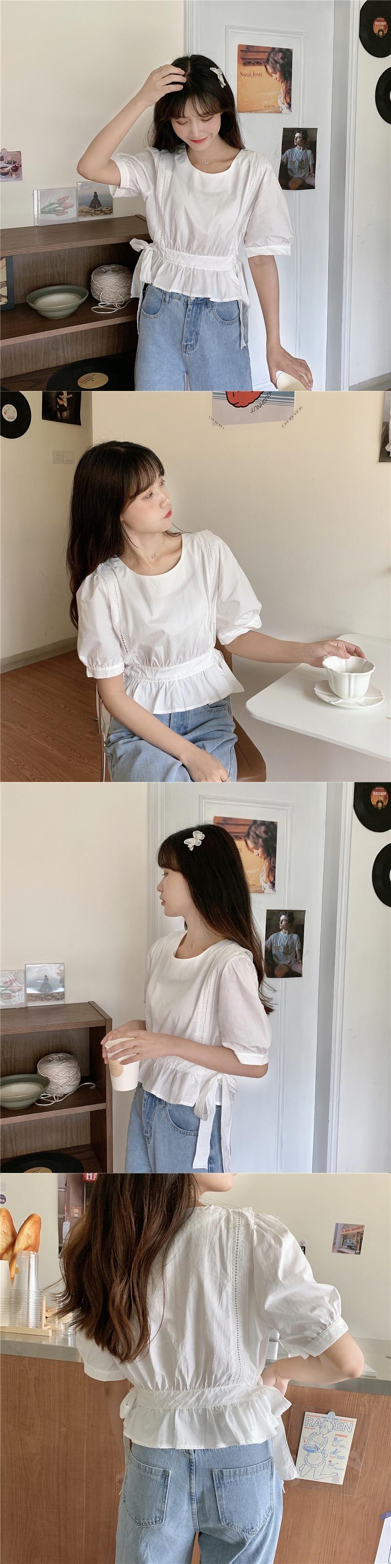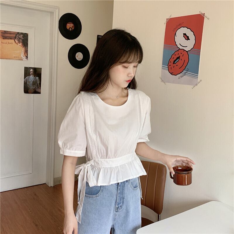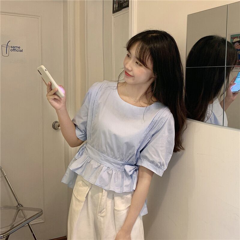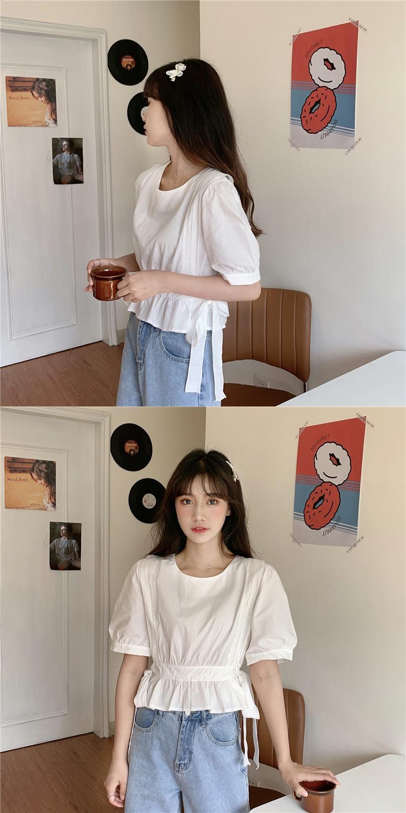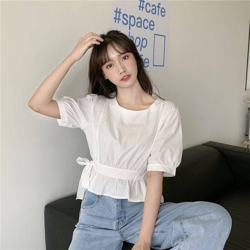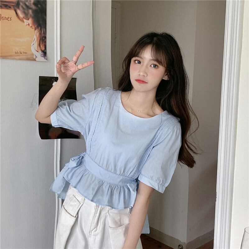 ✞ シャツブラウスウエストすっきり☆着痩せ半袖スリーブラウンドネックトップス ショート ハーフスリーブ 大人ガーリー スウィート キュート カジュアル ✞ゴスロリ SM ミリ 甘ロリ クラロリ 和ロリ エレガント 黒ロリ 姫ロリ 華ロリ BB-BB4479570