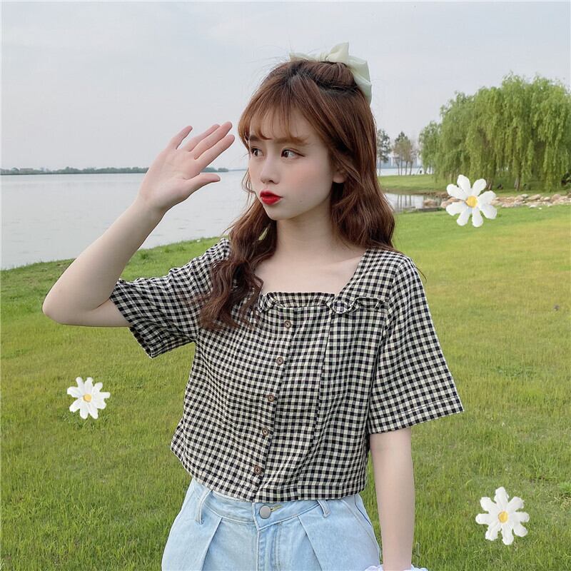 ✞ シャツブラウスチェック柄トップス 大人ガーリー スウィート キュート カジュアル スクウェア ✞ゴスロリ SM ミリ 甘ロリ クラロリ 和ロリ エレガント 黒ロリ 姫ロリ 華ロリ BB-BB5163726