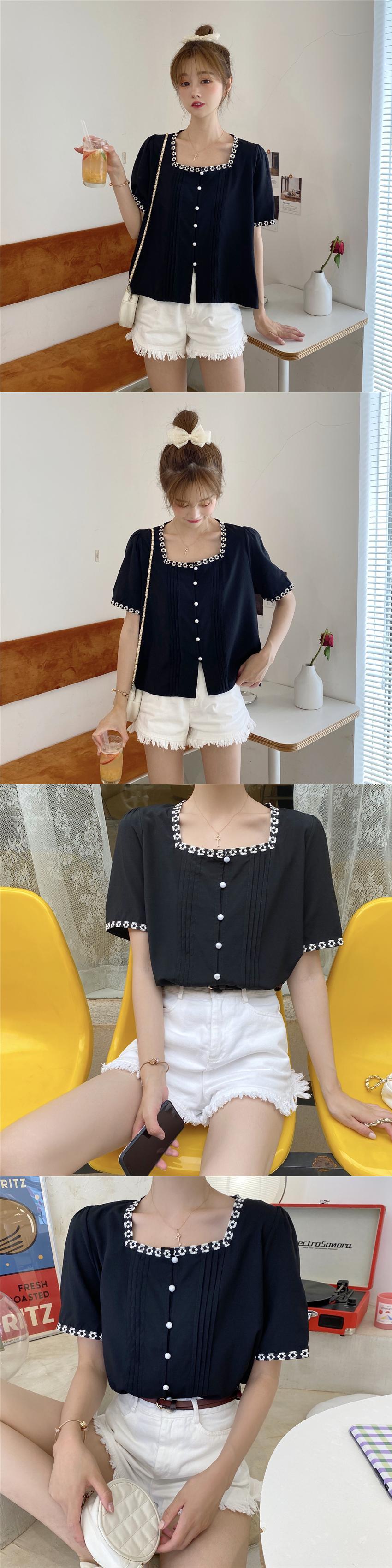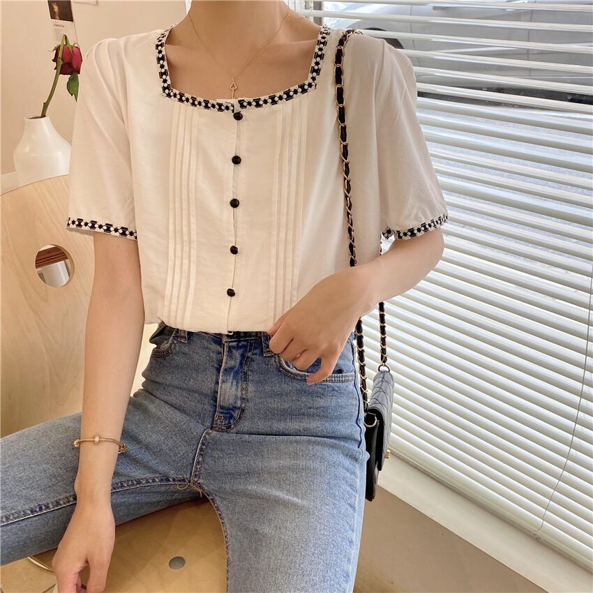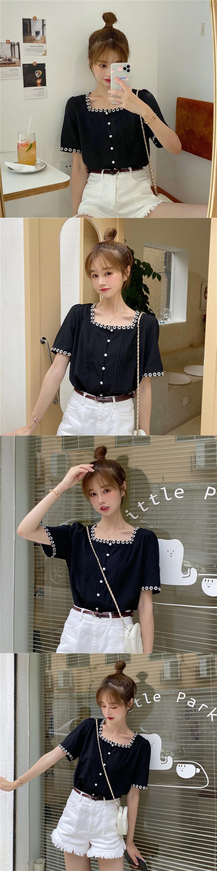 ✞ シャツブラウス刺繍プリーツトップス 大人ガーリー スウィート キュート カジュアル スクウェア ステッチ ✞ゴスロリ SM ミリ 甘ロリ クラロリ 和ロリ エレガント 黒ロリ 姫ロリ 華ロリ BB-BB9859522