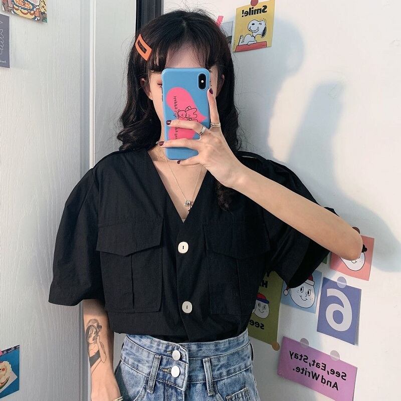 ✞ シャツブラウススタンダードブラックショートきれいめ☆半袖スリーブトップス レトロ ハーフスリーブ ✞ゴスロリ SM ミリ 甘ロリ クラロリ 和ロリ エレガント 黒ロリ 姫ロリ 華ロリ BB-BB5975593