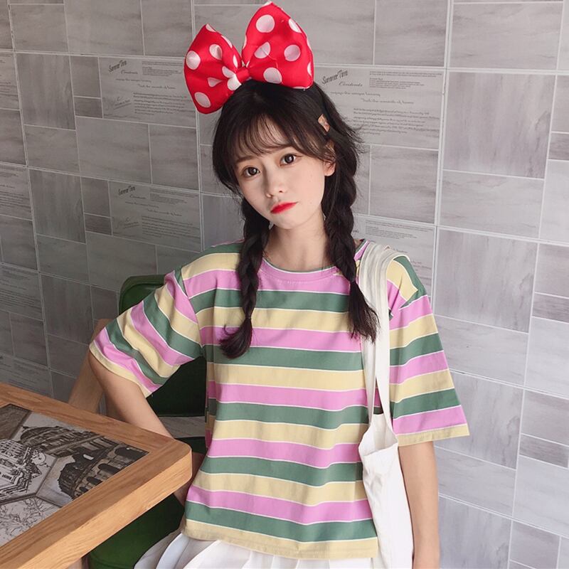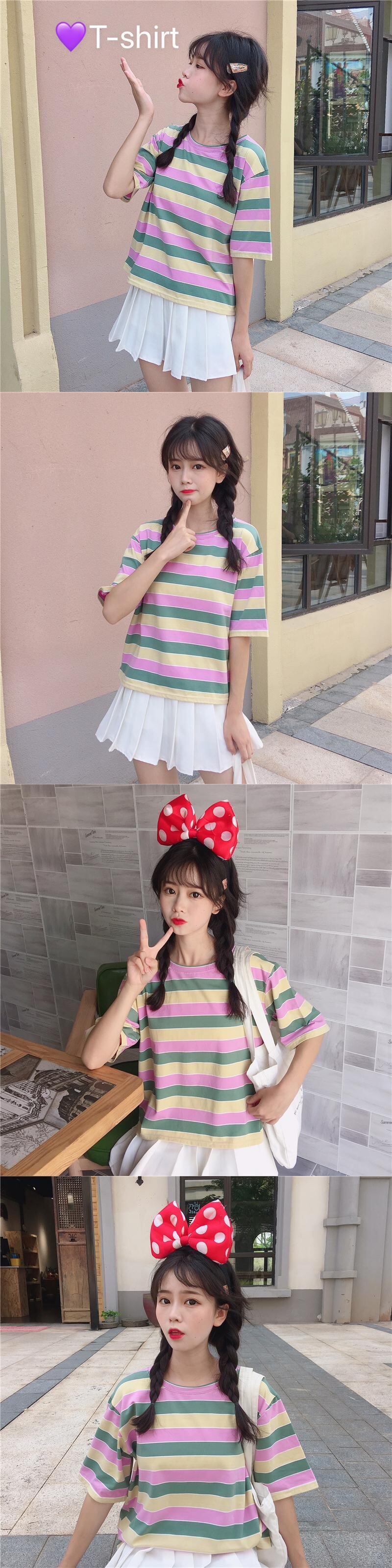 ✞ ストライプラウンドネックシャツブラウスTシャツ ✞ゴスロリ SM ミリ 甘ロリ クラロリ 和ロリ エレガント 黒ロリ 姫ロリ 華ロリ BB-BB2678699
