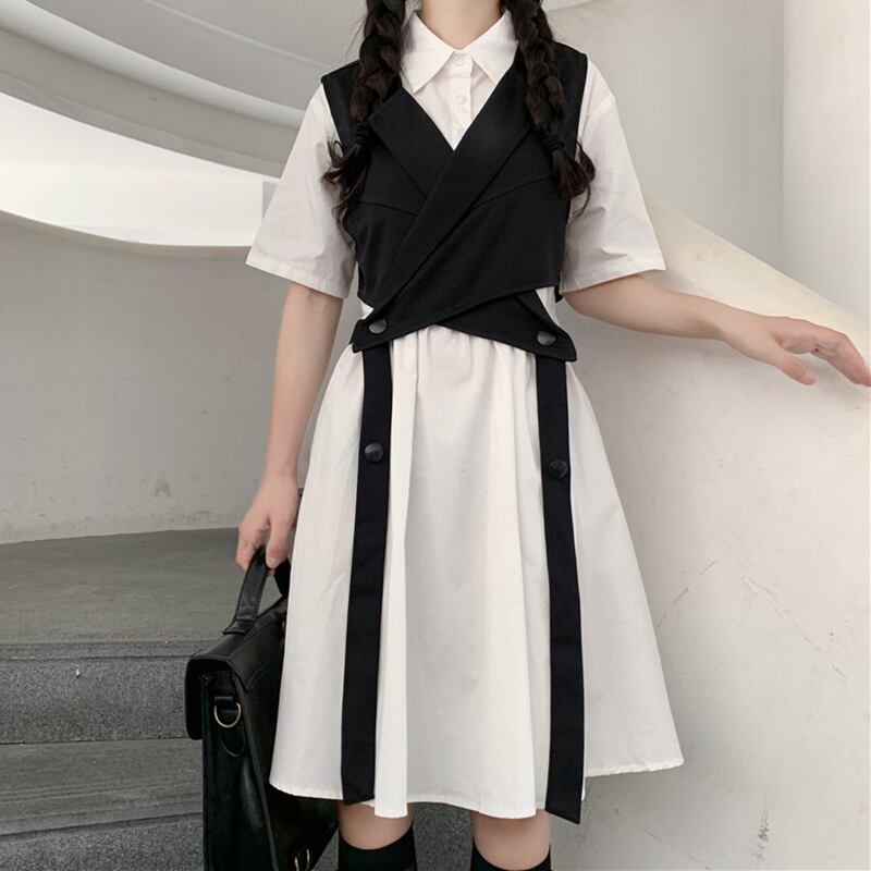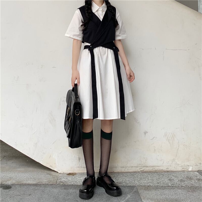色:レースアップ黒ベスト,ホワイトワンピース