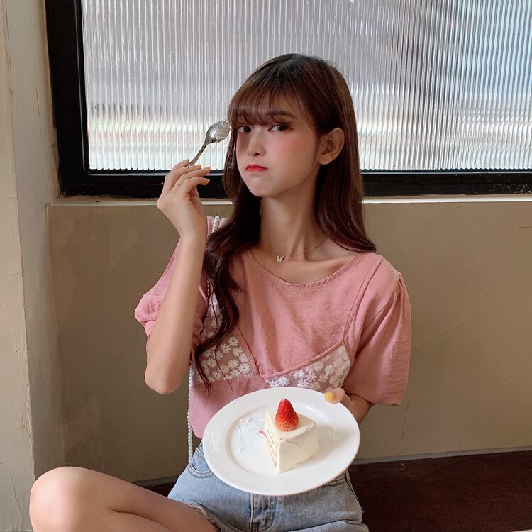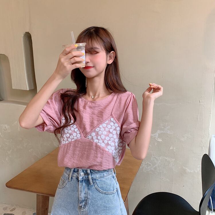 ✞ ラウンドネックレースシャツブラウス ピンク スウィート ステッチ ✞ゴスロリ SM ミリ 甘ロリ クラロリ 和ロリ エレガント 黒ロリ 姫ロリ 華ロリ BB-BB3063455