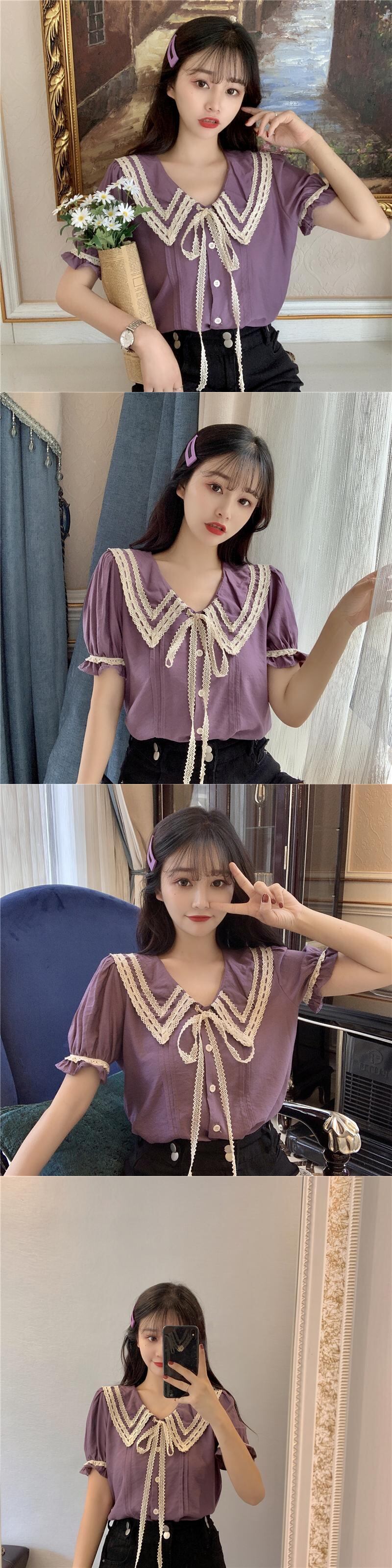 ✞ シャツブラウストップス リボン レース スウィート ガーリー レースアップ ✞ゴスロリ SM ミリ 甘ロリ クラロリ 和ロリ エレガント 黒ロリ 姫ロリ 華ロリ BB-BB8962908