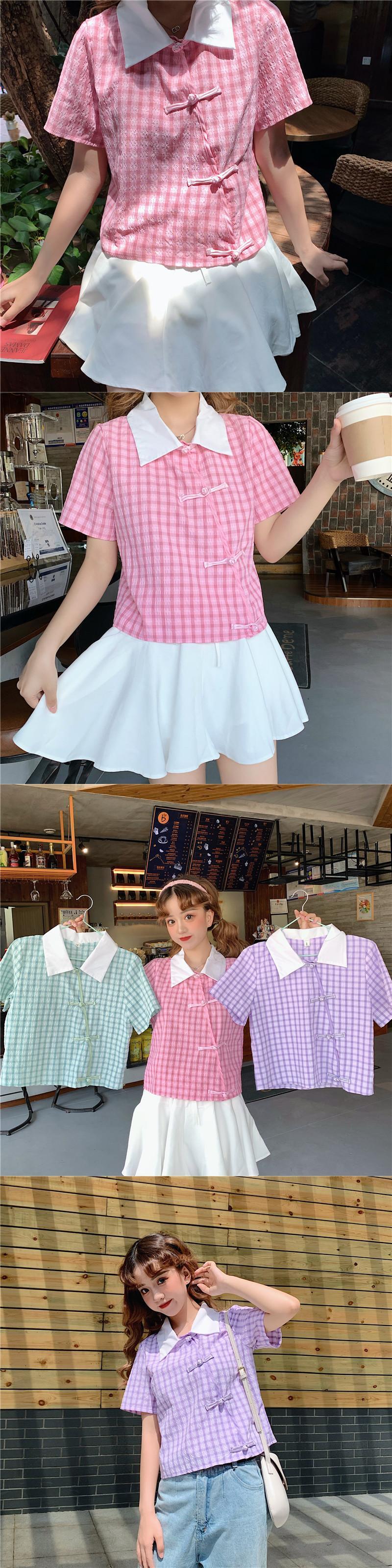✞ きれいめ☆ボタンシャツブラウスチェック柄 ステッチ ✞ゴスロリ SM ミリ 甘ロリ クラロリ 和ロリ エレガント 黒ロリ 姫ロリ 華ロリ BB-BB6734054