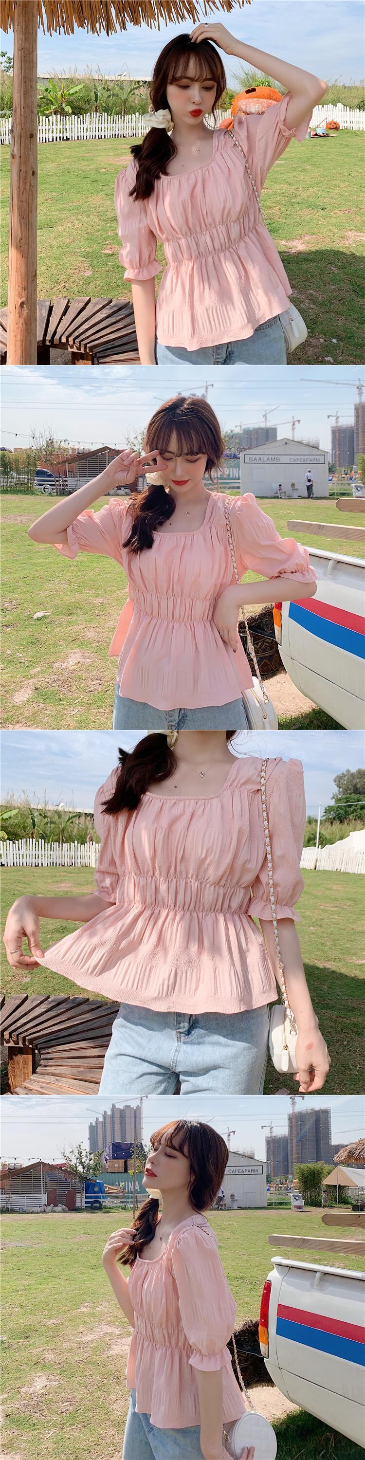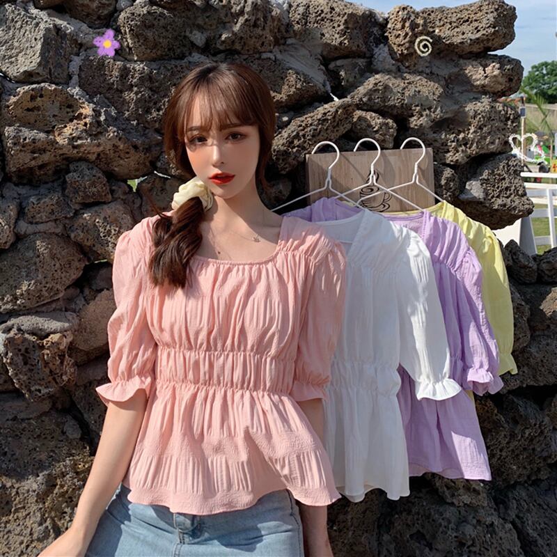 ✞ サマーカラープリーツスリムスリーブショートシャツブラウス 夏物 スクウェア ✞ゴスロリ SM ミリ 甘ロリ クラロリ 和ロリ エレガント 黒ロリ 姫ロリ 華ロリ BB-BB5867281