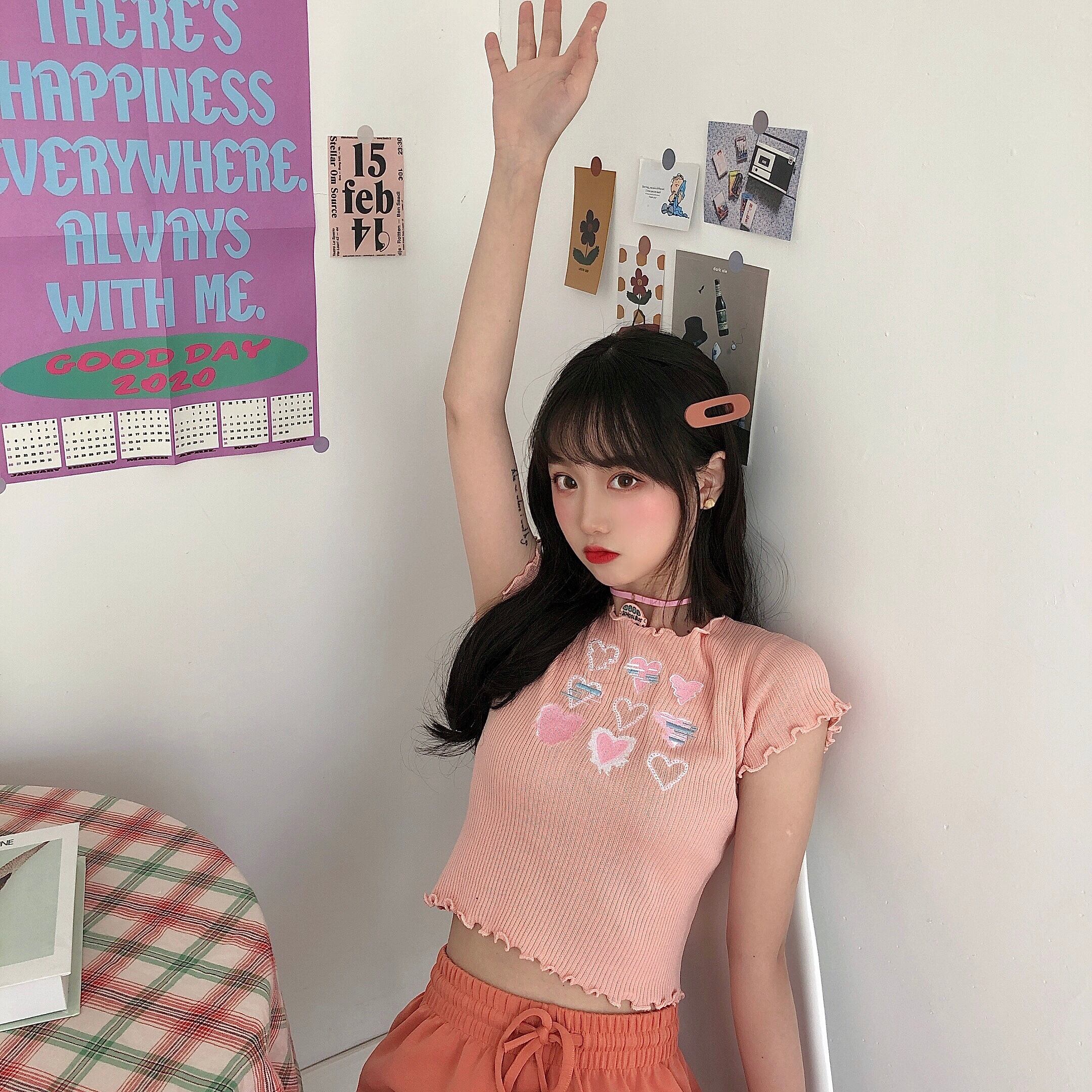 ✞ ショート刺繍♥カワイイ♥半袖スリーブTシャツ ニットトップス ガーリー ✞ゴスロリ SM ミリ 甘ロリ クラロリ 和ロリ エレガント 黒ロリ 姫ロリ 華ロリ BB-BB0166031