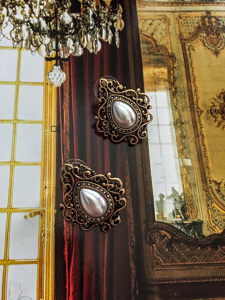 ✞ ヴィンテージイヤリング パールパターンピアス レース 真珠 指輪 ビンテージ ✞ゴスロリ SM ミリ 甘ロリ クラロリ 和ロリ エレガント 黒ロリ 姫ロリ 華ロリ CC-CC7671472