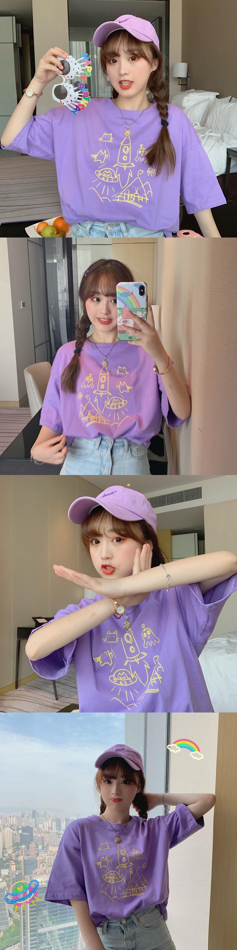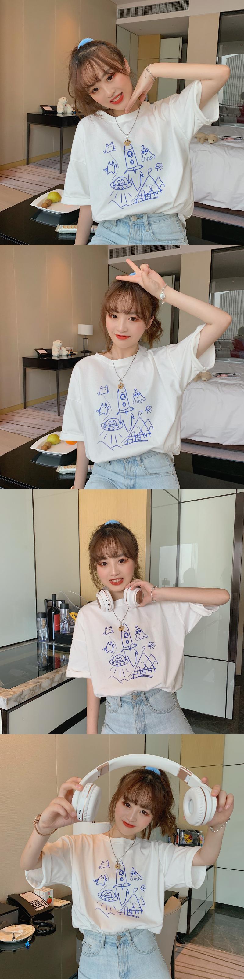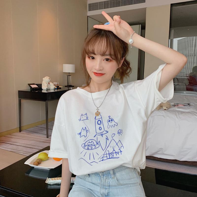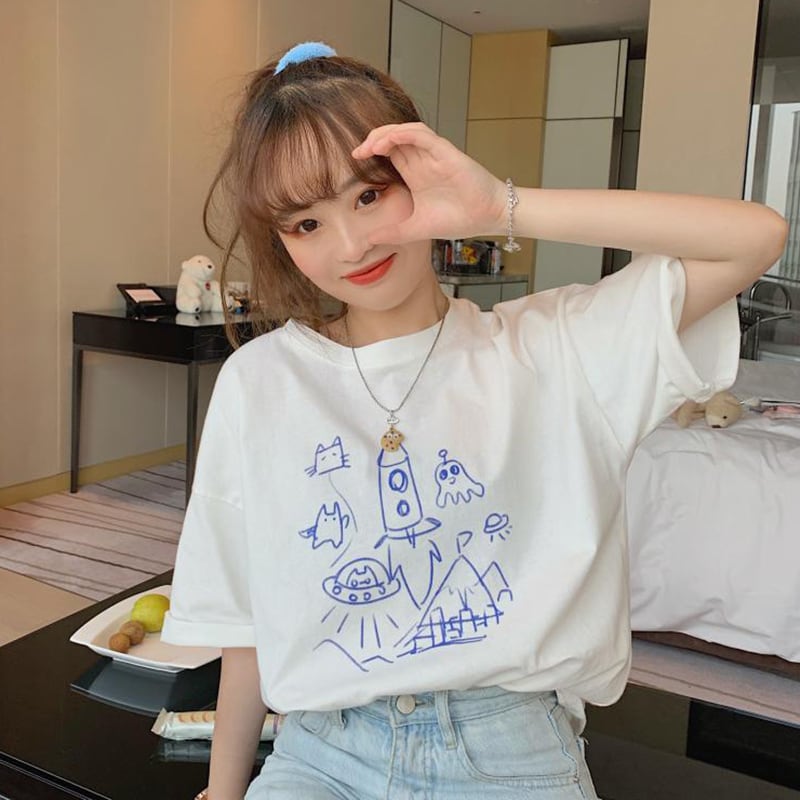 ✞ サマーパターンルーズ半袖スリーブTシャツ 大人女子☆ ショート ガーリー 夏物 ✞ゴスロリ SM ミリ 甘ロリ クラロリ 和ロリ エレガント 黒ロリ 姫ロリ 華ロリ BB-BB8704186