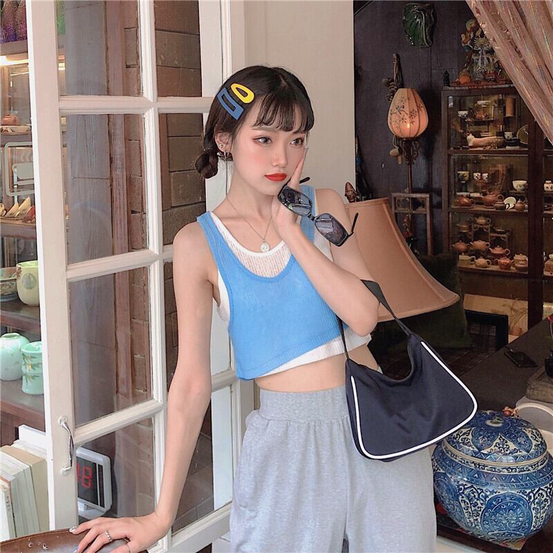 ✞ ブルー白カラースリムノースリーブトップス ホワイト スウィート ✞ゴスロリ SM ミリ 甘ロリ クラロリ 和ロリ エレガント 黒ロリ 姫ロリ 華ロリ BB-BB2628673