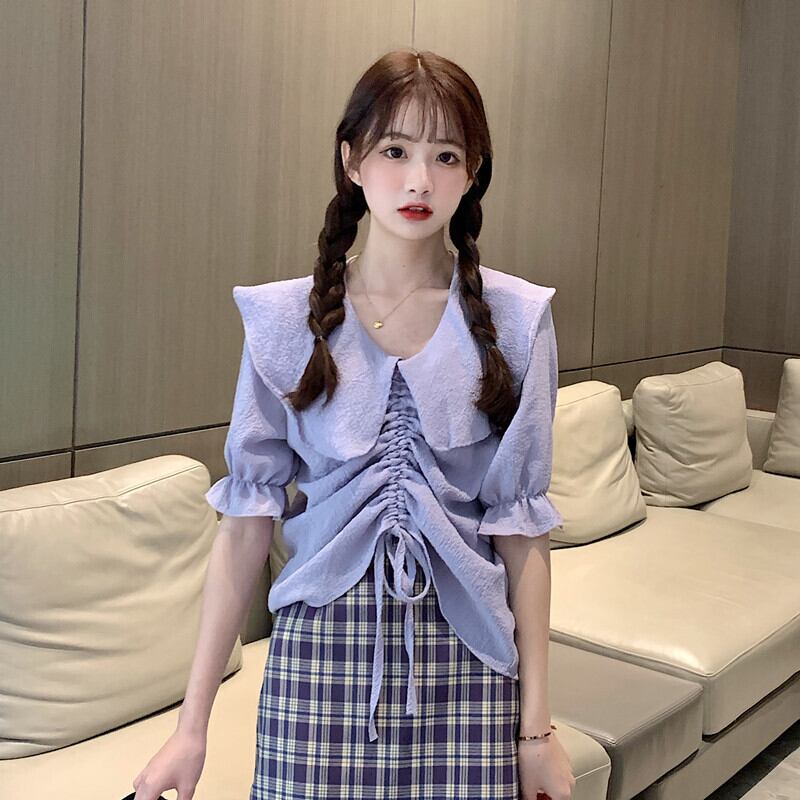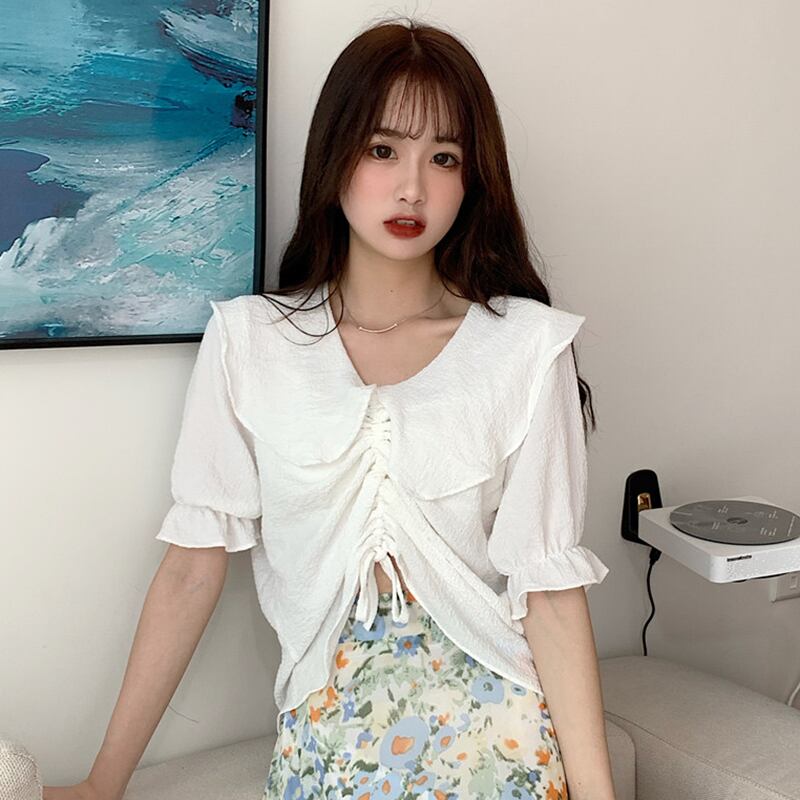 ✞ ショートシャツブラウスプリーツギャザーソリッド カラートップス スウィート ガーリー ソリッドカラー ✞ゴスロリ SM ミリ 甘ロリ クラロリ 和ロリ エレガント 黒ロリ 姫ロリ 華ロリ BB-BB6766381