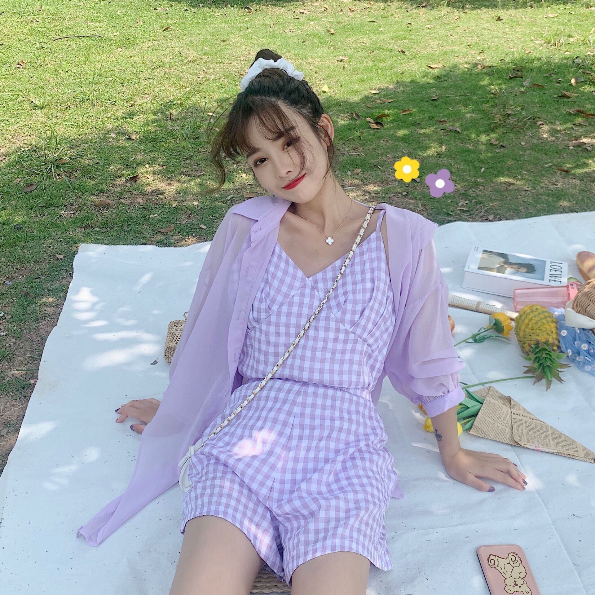 色:紫の日焼け防止服,白い日焼け止め,パープルサスペンダーショーツセット,ブラックサスペンダーショーツスーツ