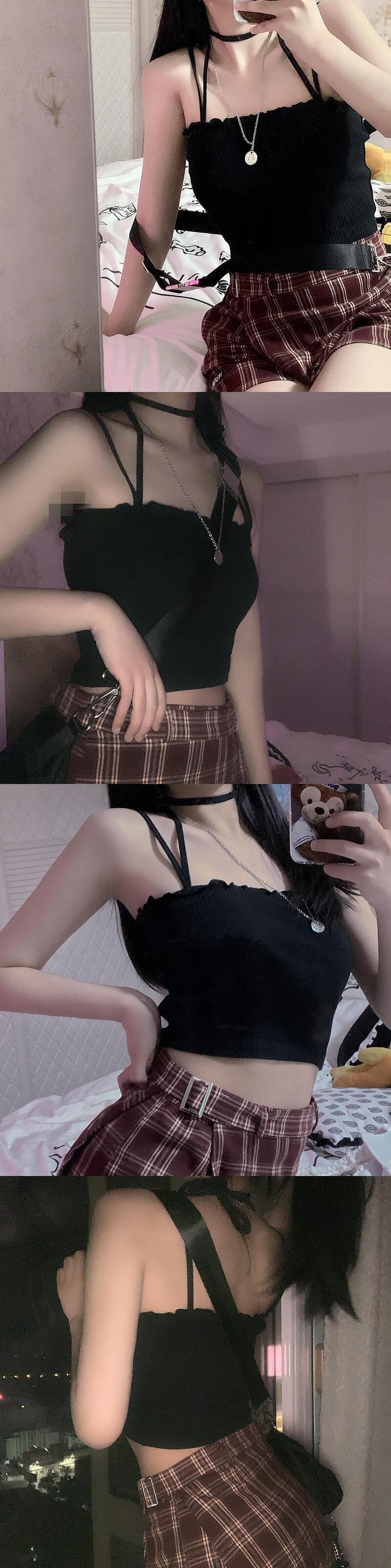 ✞ トップスサマースリムソリッド ウエストすっきり☆着痩せショートストラップレスホルター 夏物 ソリッドカラー ✞ゴスロリ SM ミリ 甘ロリ クラロリ 和ロリ エレガント 黒ロリ 姫ロリ 華ロリ BB-BB3120656