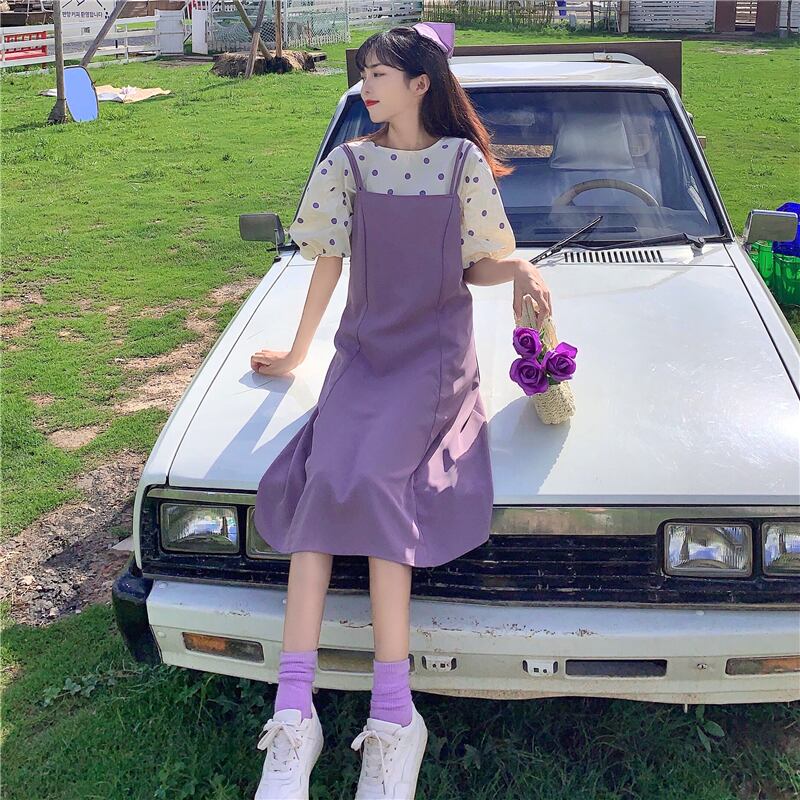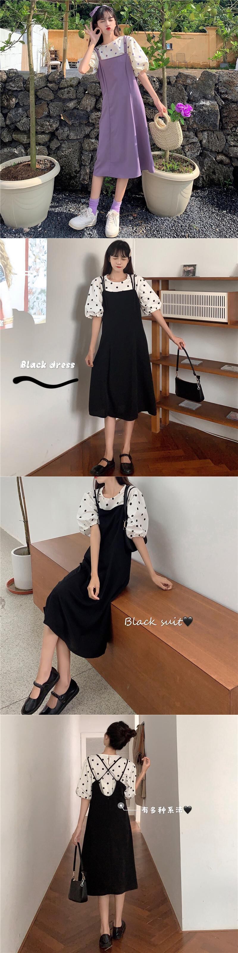 色:パープルサスペンダースカートワンピース,イエローサスペンダースカートワンピース,ブラックサスペンダースカートワンピース,パープルポルカドットシングルピース,イエローポルカドットワンピース,ブラックポルカドットワンピース