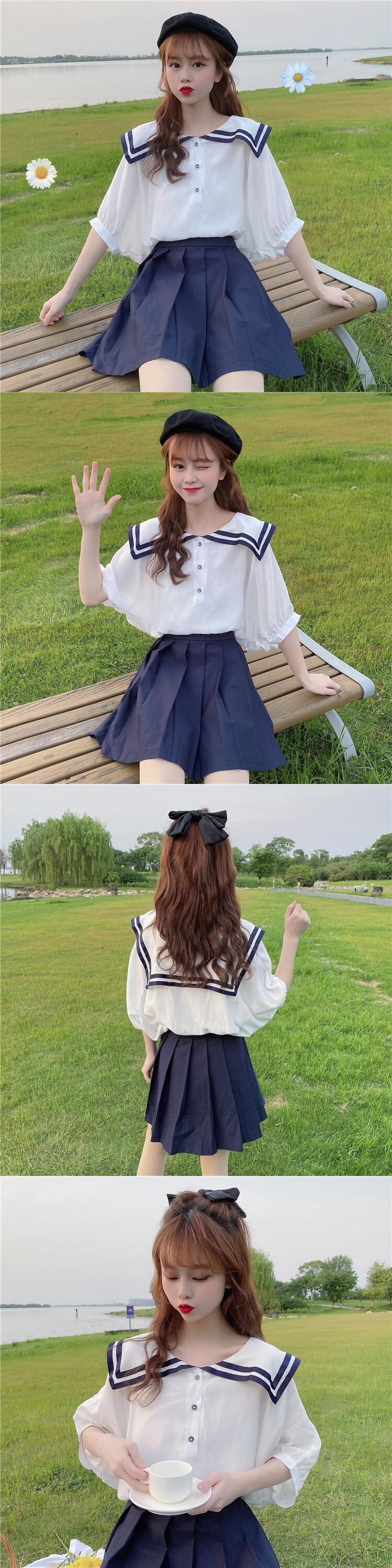 ✞ ネイビースリーブトップス ソリッド カラープリーツスカート スウィート ソリッドカラー ✞ゴスロリ SM ミリ 甘ロリ クラロリ 和ロリ エレガント 黒ロリ 姫ロリ 華ロリ BB-BB6096926