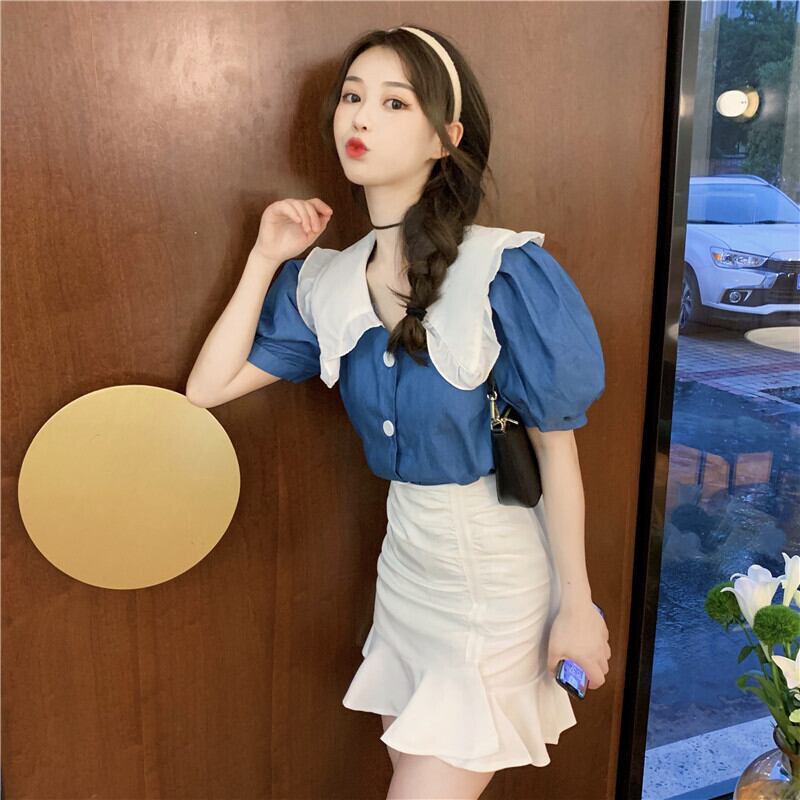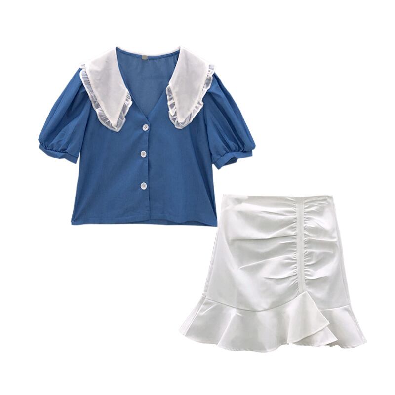 色:ブルートップワンピース,ホワイトスカートワンピース