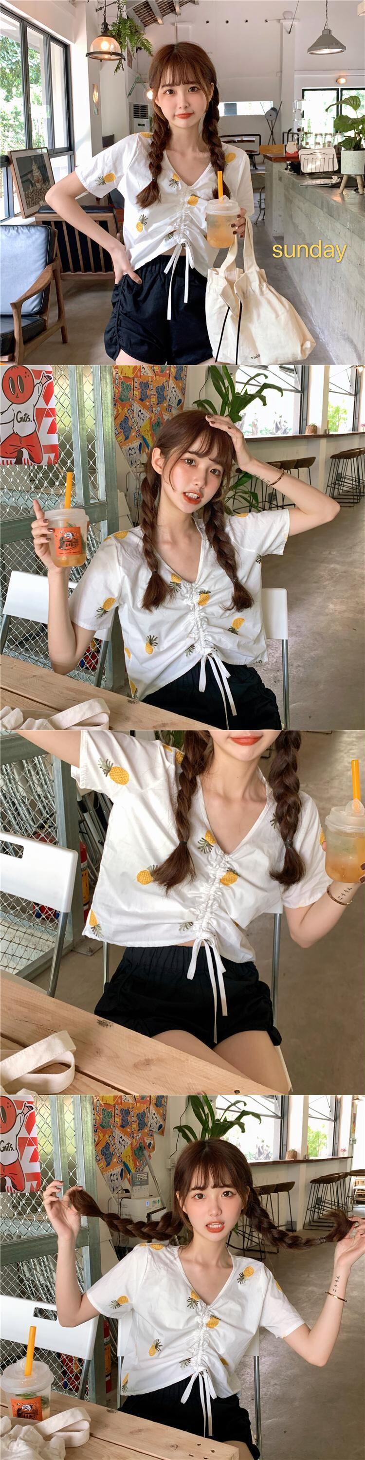 ✞ ショートシャツブラウスギャザーVネック♥カワイイ♥大人女子☆ 刺繍 スウィート ガーリー ✞ゴスロリ SM ミリ 甘ロリ クラロリ 和ロリ エレガント 黒ロリ 姫ロリ 華ロリ BB-BB1224969