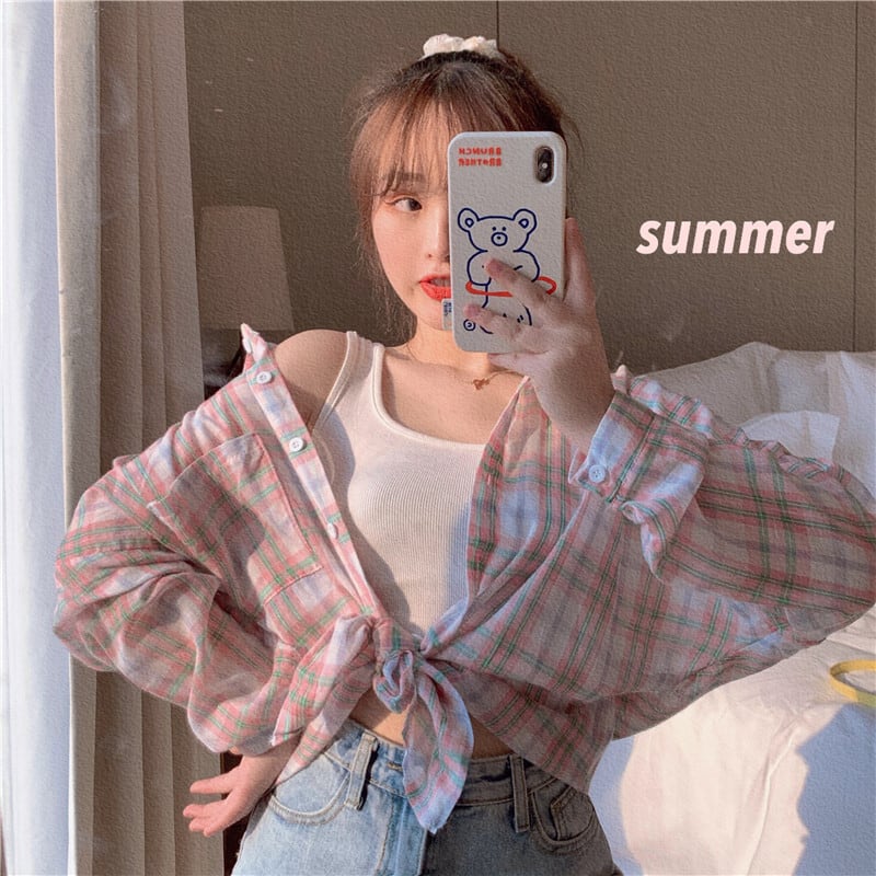 ✞ サマーチェック柄シャツブラウス♥カワイイ♥トップス ロング 夏物 ✞ゴスロリ SM ミリ 甘ロリ クラロリ 和ロリ エレガント 黒ロリ 姫ロリ 華ロリ BB-BB9199481