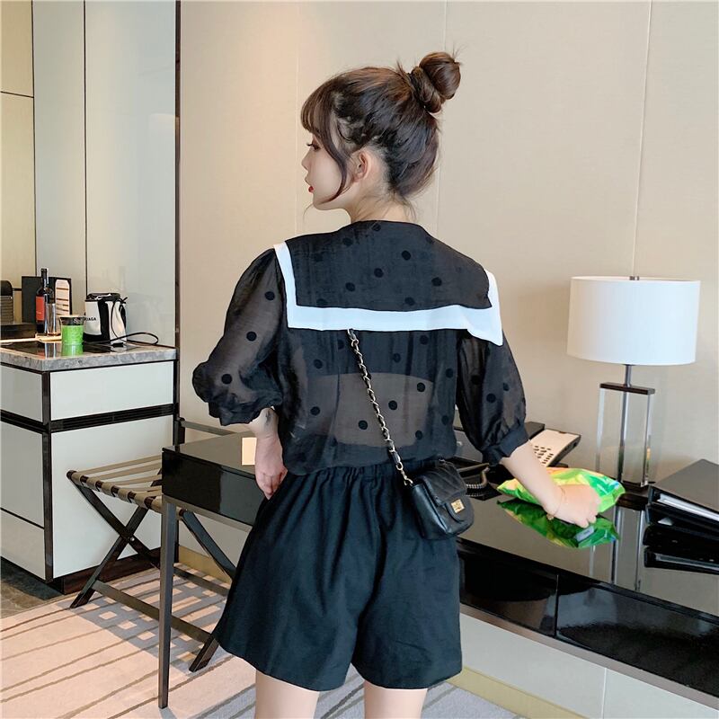 ✞ トップス 水玉♥カワイイ♥シフォンシャツブラウス スウィート ガーリー ✞ゴスロリ SM ミリ 甘ロリ クラロリ 和ロリ エレガント 黒ロリ 姫ロリ 華ロリ BB-BB5590402