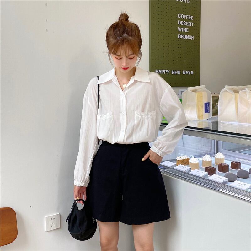 ✞ ♥カワイイ♥ソリッド カラー長袖スリーブポケットシャツブラウスジャケット ロング ソリッドカラー ✞ゴスロリ SM ミリ 甘ロリ クラロリ 和ロリ エレガント 黒ロリ 姫ロリ 華ロリ BB-BB1954797