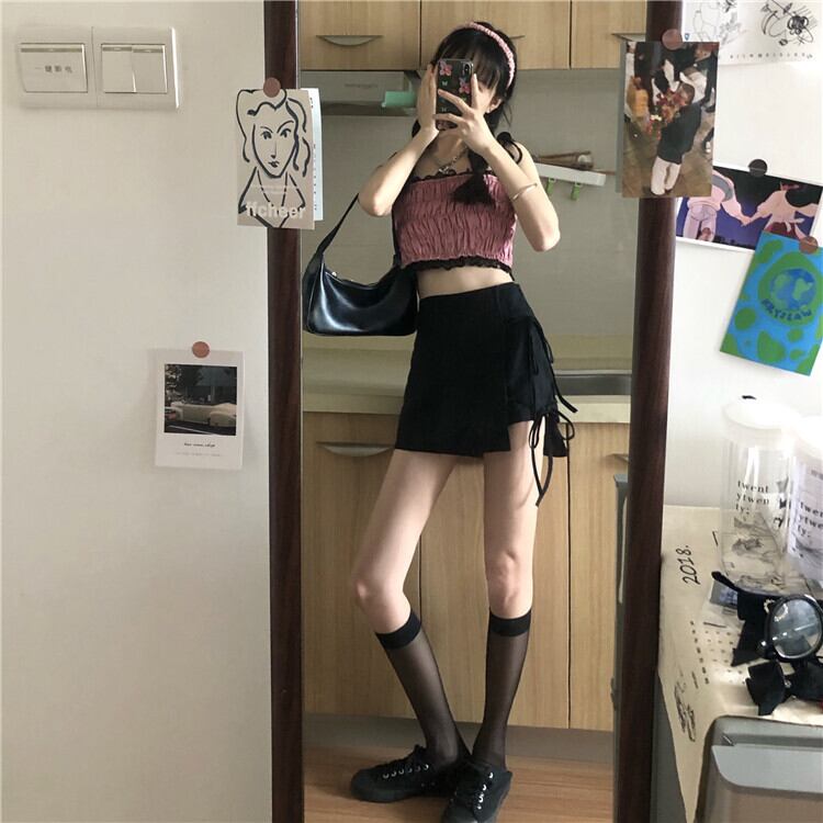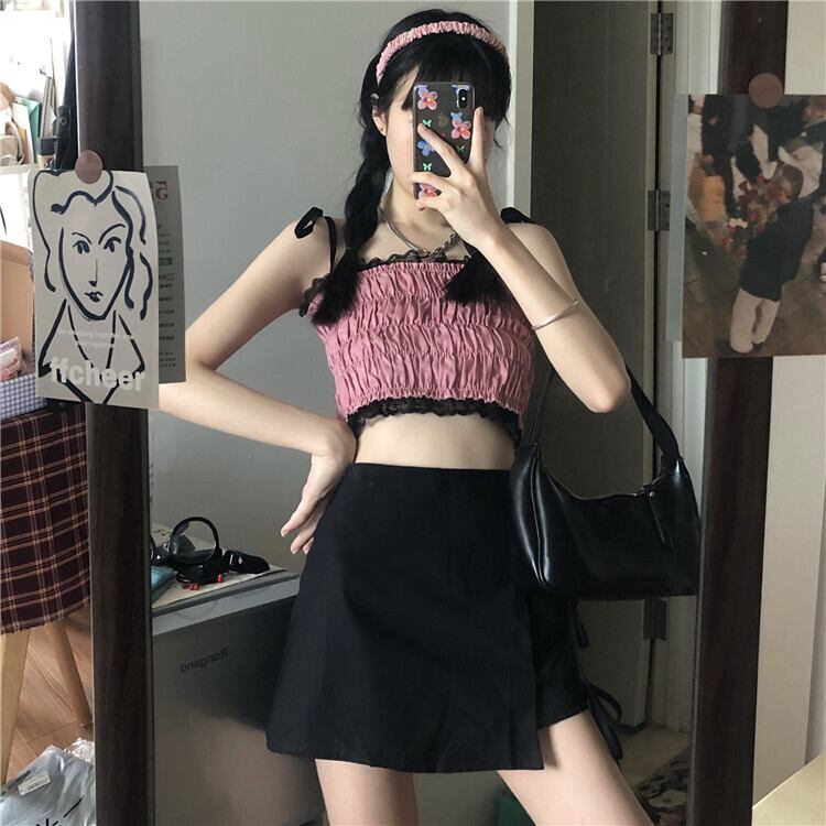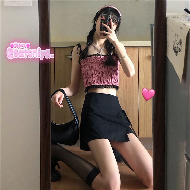 ✞ トップス プリーツスリムレースショートキャミソール スウィート ステッチ ✞ゴスロリ SM ミリ 甘ロリ クラロリ 和ロリ エレガント 黒ロリ 姫ロリ 華ロリ BB-BB5754279