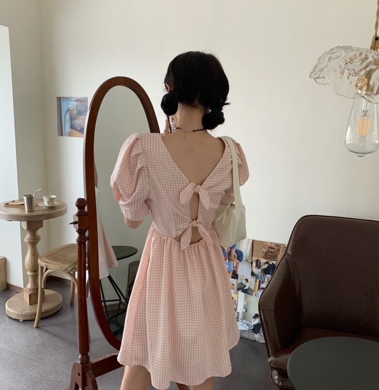 ✞ ホルターリボンチェックプリーツワンピ パフスリーブ スウィート スクウェア ✞ゴスロリ SM ミリ 甘ロリ クラロリ 和ロリ エレガント 黒ロリ 姫ロリ 華ロリ BB-BB2094651
