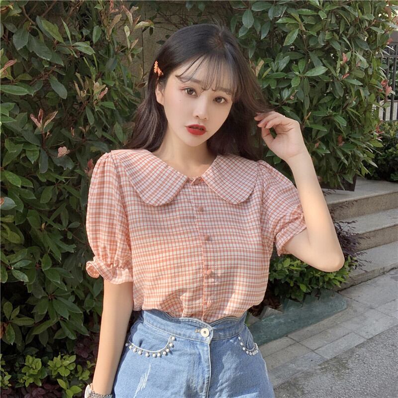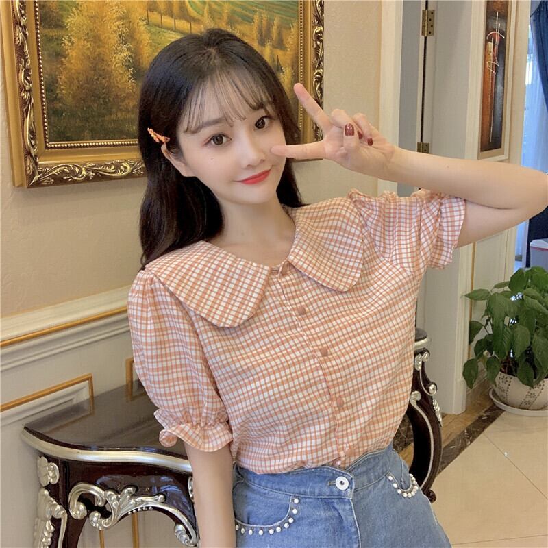 ✞ シャツブラウスカラーチェック柄 スウィート ✞ゴスロリ SM ミリ 甘ロリ クラロリ 和ロリ エレガント 黒ロリ 姫ロリ 華ロリ BB-BB2481857