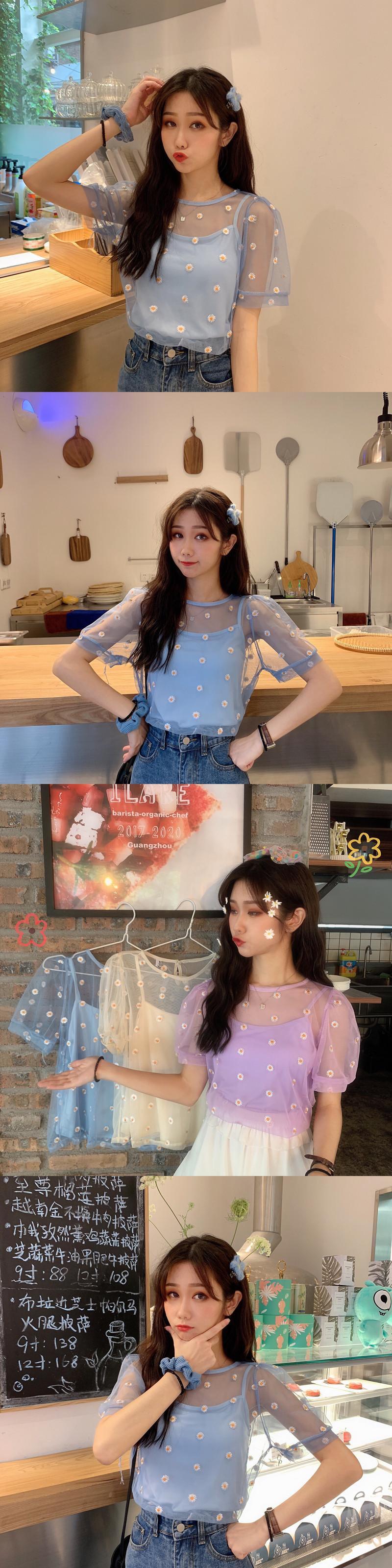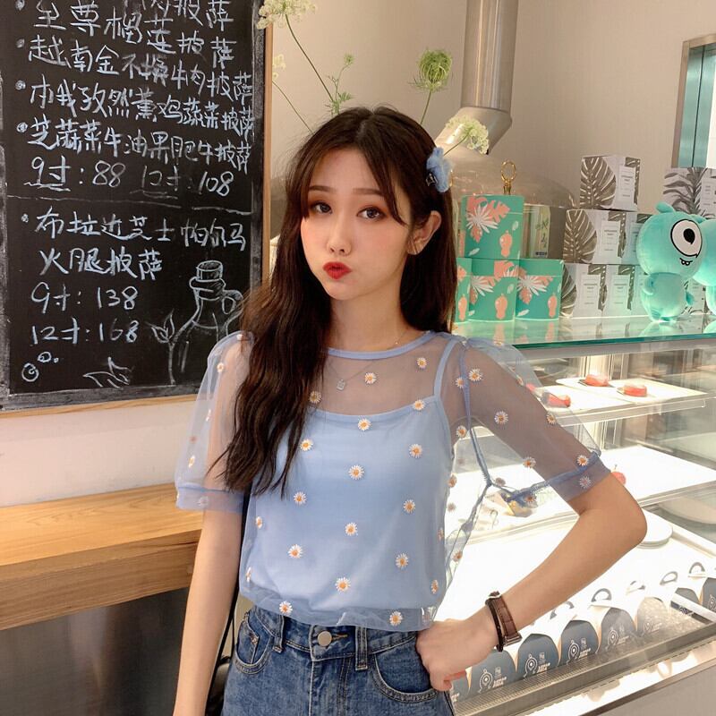 ✞ 刺繍スリーブメッシュシャツブラウスラウンドネックトップス スウィート ✞ゴスロリ SM ミリ 甘ロリ クラロリ 和ロリ エレガント 黒ロリ 姫ロリ 華ロリ BB-BB3903224