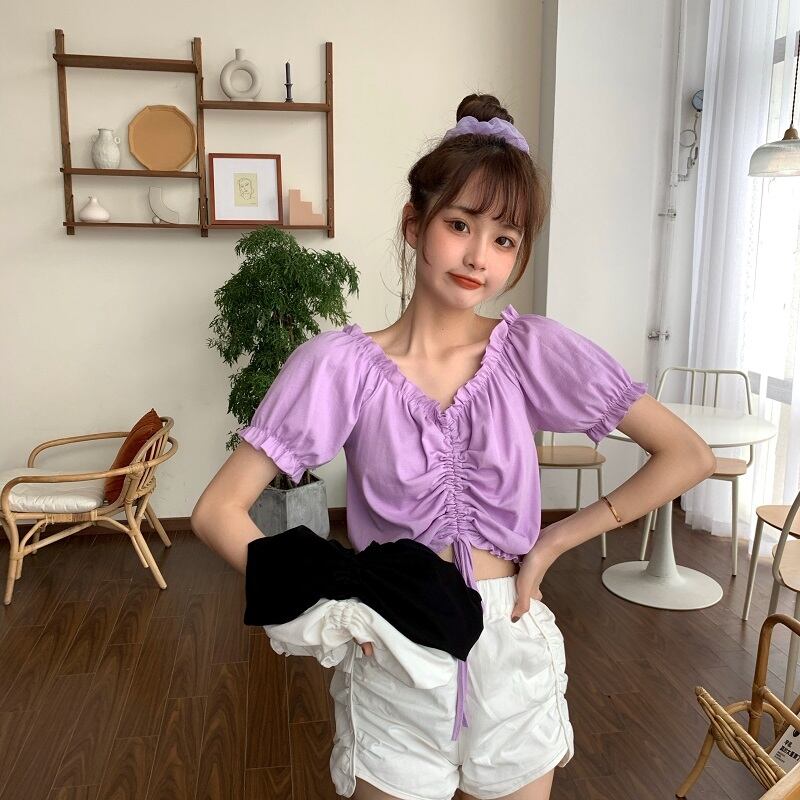 ✞ ギャザーレースショートVネックソリッド カラーシャツブラウスジャケット スウィート ソリッドカラー ✞ゴスロリ SM ミリ 甘ロリ クラロリ 和ロリ エレガント 黒ロリ 姫ロリ 華ロリ BB-BB9140777