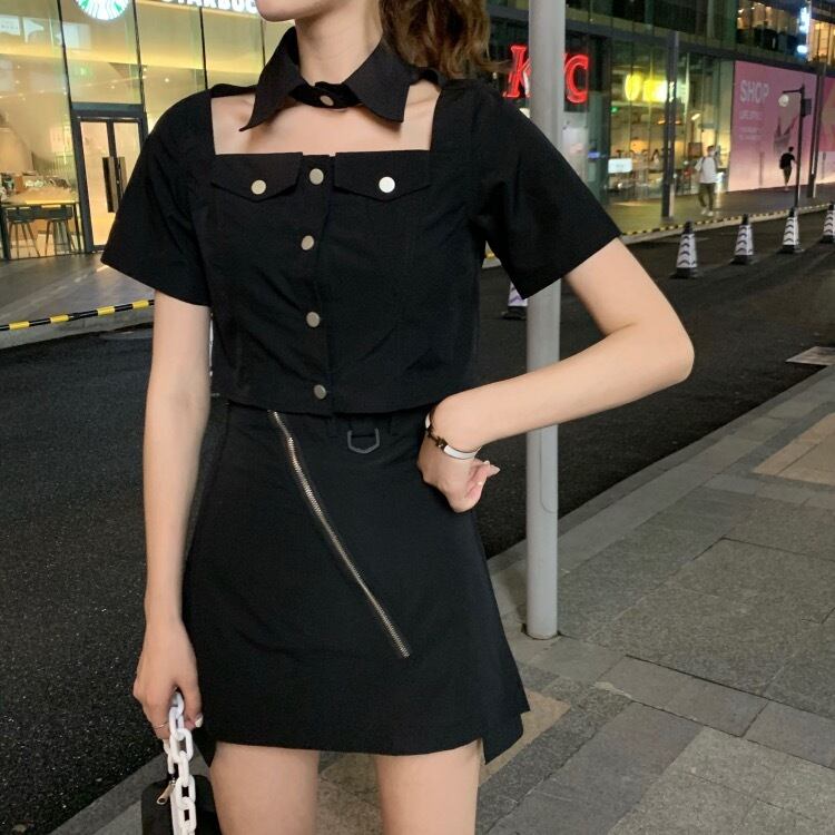✞ サマーブラックスクエアネックワンピ シャツブラウス♥カワイイ♥スカート 夏物 ✞ゴスロリ SM ミリ 甘ロリ クラロリ 和ロリ エレガント 黒ロリ 姫ロリ 華ロリ BB-BB6046834