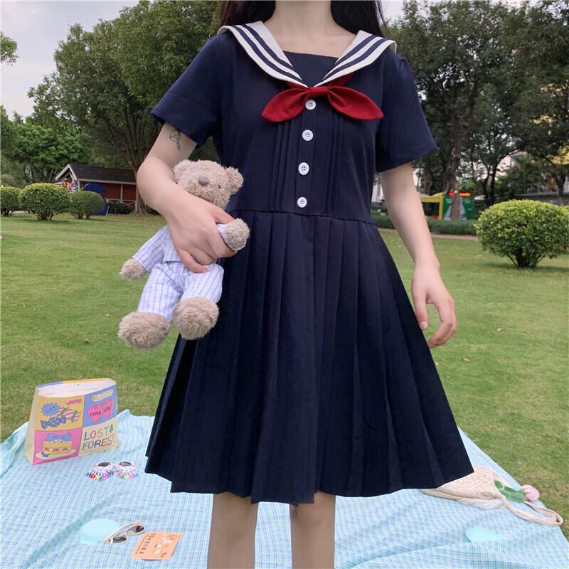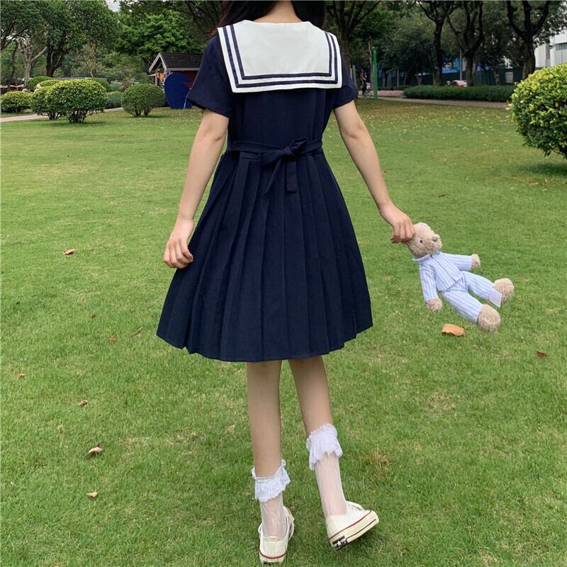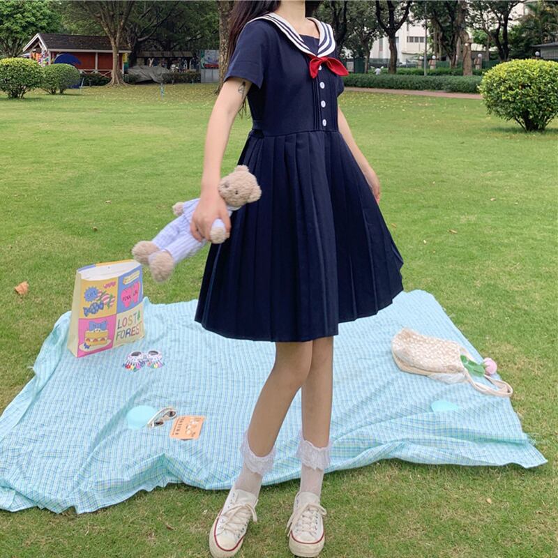✞ セーラーカラーネイビー半袖スリーブワンピ プリーツ ショート ✞ゴスロリ SM ミリ 甘ロリ クラロリ 和ロリ エレガント 黒ロリ 姫ロリ 華ロリ BB-BB1455360