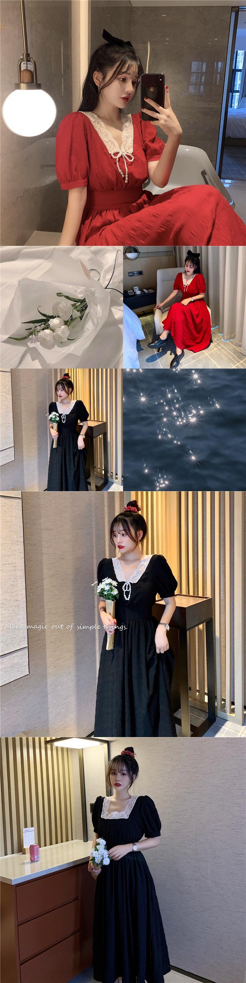 ✞ スカート Vネックレースプリーツスリーブ スウィート ステッチ ✞ゴスロリ SM ミリ 甘ロリ クラロリ 和ロリ エレガント 黒ロリ 姫ロリ 華ロリ BB-BB1624516