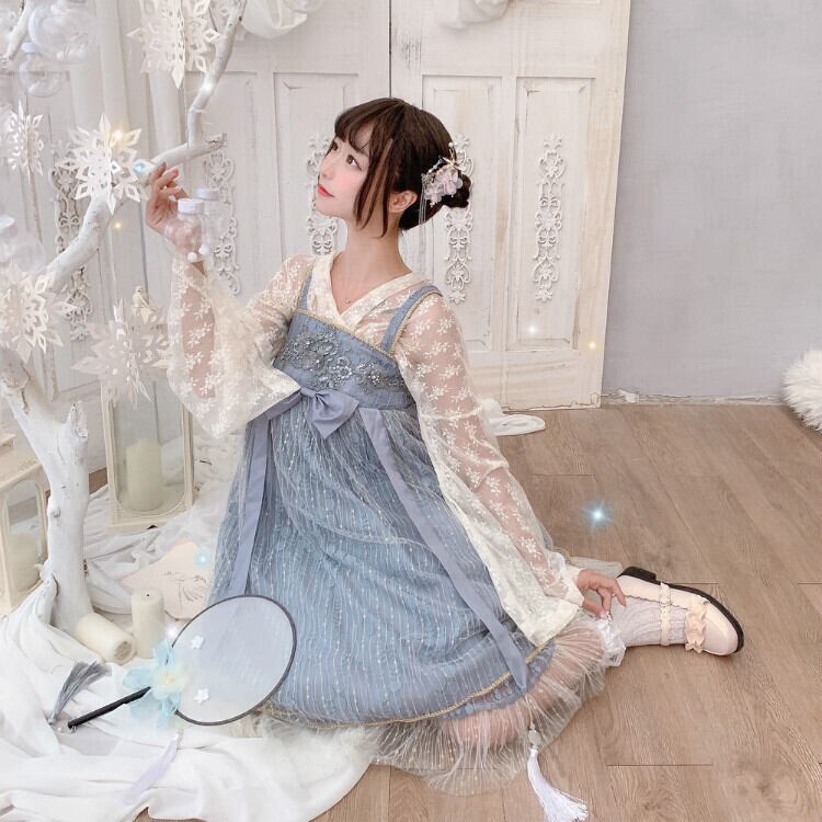 ✞ ☆レースメッシュ姫袖シャツブラウス or りぼんワンピースドレスOP ✞ゴスロリ SM ミリ 甘ロリ クラロリ 和ロリ エレガント 黒ロリ 姫ロリ 華ロリ BB-BB0761057