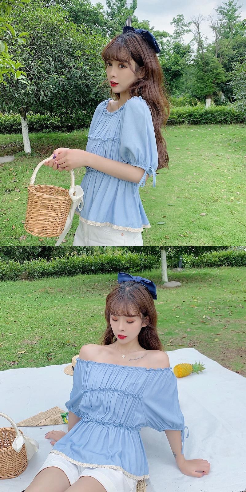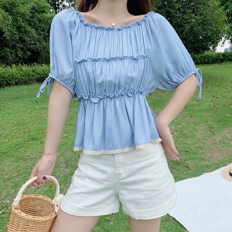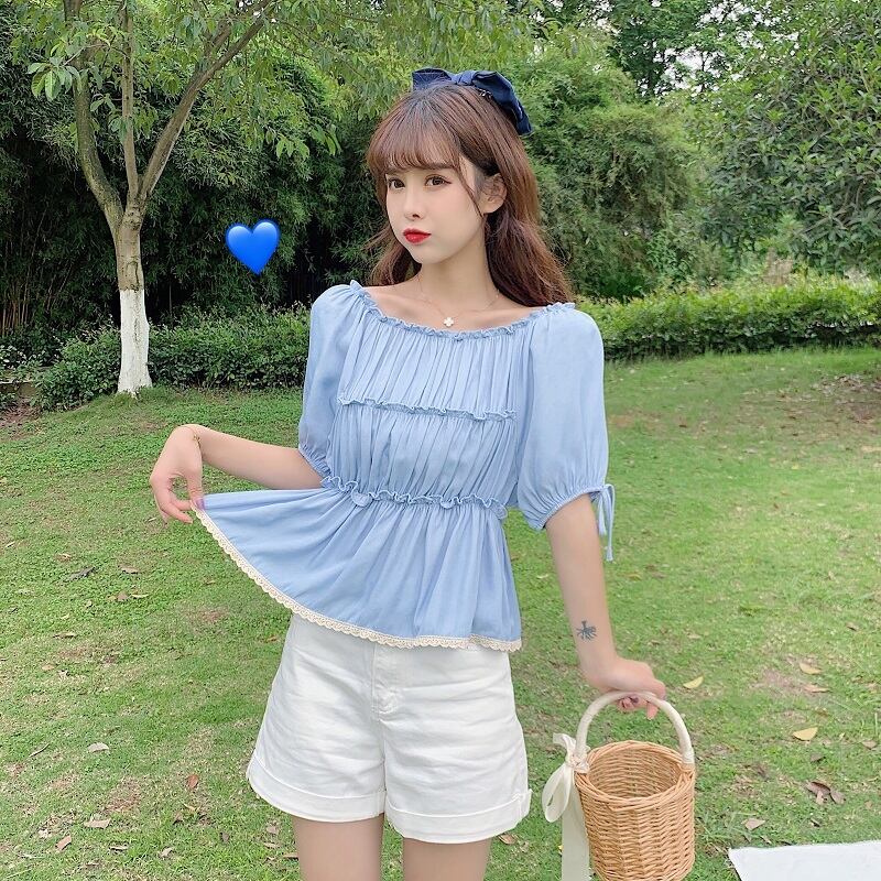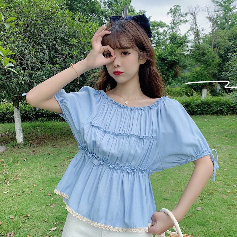 ✞ シャツブラウスプリーツウエストすっきり☆着痩せスリーブショート ✞ゴスロリ SM ミリ 甘ロリ クラロリ 和ロリ エレガント 黒ロリ 姫ロリ 華ロリ BB-BB9312781