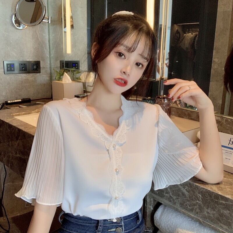 ✞ スタンダードシフォンシャツブラウスレースVネック白トップス ホワイト レトロ スウィート ステッチ ✞ゴスロリ SM ミリ 甘ロリ クラロリ 和ロリ エレガント 黒ロリ 姫ロリ 華ロリ BB-BB2563720