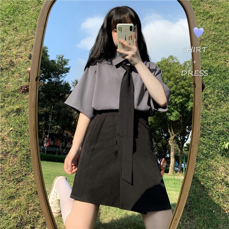 色:シャツ一枚,短いスカート,ネクタイワンピース