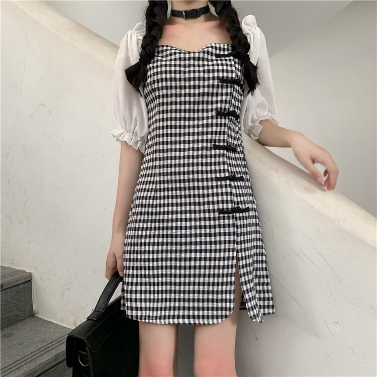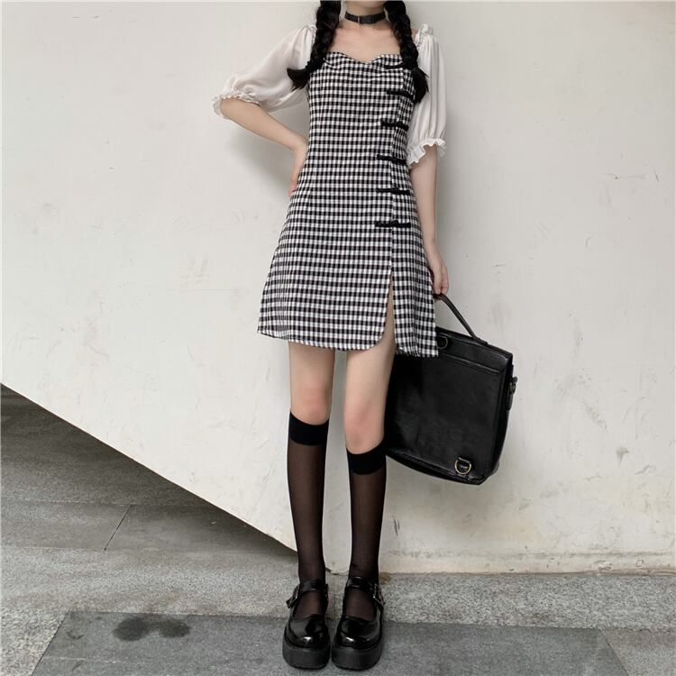 ✞ スカート スタンダードバックルブラック白スリーブ ホワイト レトロ スクウェア ステッチ ✞ゴスロリ SM ミリ 甘ロリ クラロリ 和ロリ エレガント 黒ロリ 姫ロリ 華ロリ BB-BB5784417