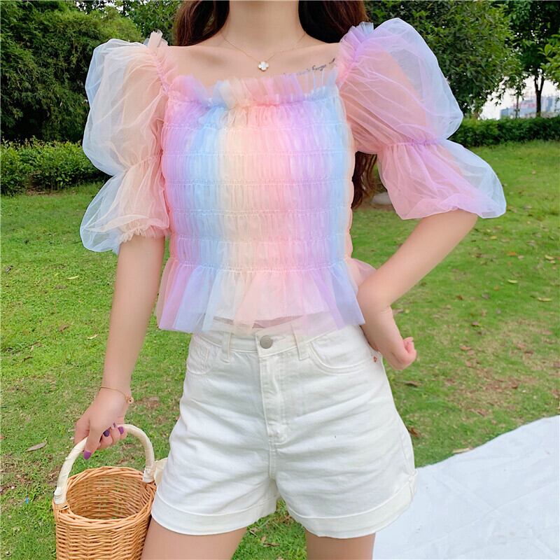 ✞ カラープリーツショートシャツブラウスメッシュスリーブトップス 大人女子☆ スウィート ステッチ ✞ゴスロリ SM ミリ 甘ロリ クラロリ 和ロリ エレガント 黒ロリ 姫ロリ 華ロリ BB-BB0995479