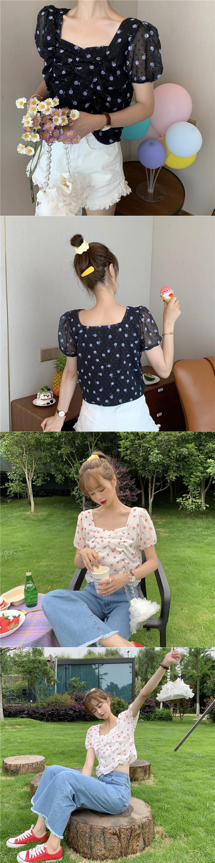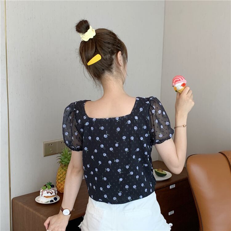 ✞ スリーブショート花柄シフォントップス シャツブラウス スウィート スクウェア ✞ゴスロリ SM ミリ 甘ロリ クラロリ 和ロリ エレガント 黒ロリ 姫ロリ 華ロリ BB-BB9885872