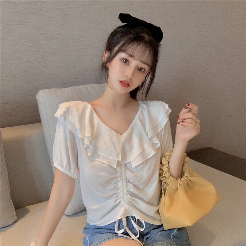 ✞ ショートシャツブラウスギャザーレーススリーブトップス 大人女子☆ スウィート ✞ゴスロリ SM ミリ 甘ロリ クラロリ 和ロリ エレガント 黒ロリ 姫ロリ 華ロリ BB-BB5685109