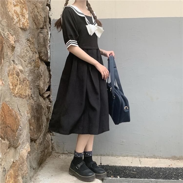 ✞ スカート きれいめ☆ネイビー半袖スリーブプリーツ ショート リボン スウィート ✞ゴスロリ SM ミリ 甘ロリ クラロリ 和ロリ エレガント 黒ロリ 姫ロリ 華ロリ BB-BB2522192