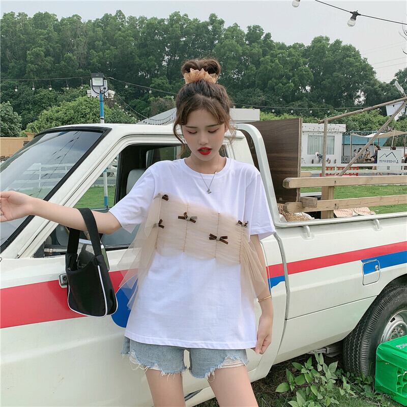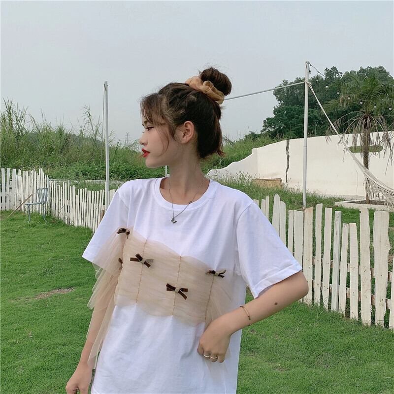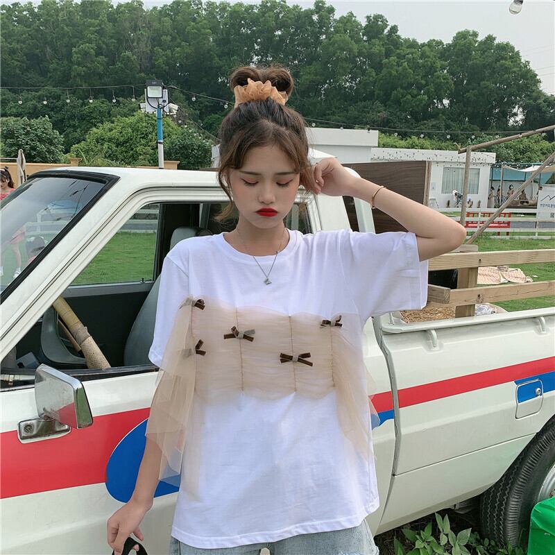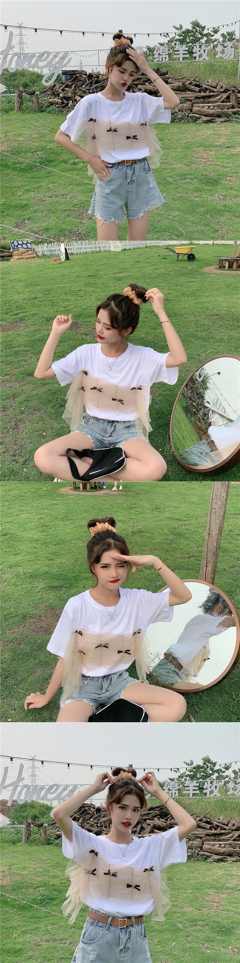 ✞ プリーツメッシュリボンラウンドネックプルオーバー 半袖スリーブTシャツ ショート スウィート ステッチ ✞ゴスロリ SM ミリ 甘ロリ クラロリ 和ロリ エレガント 黒ロリ 姫ロリ 華ロリ BB-BB2842985