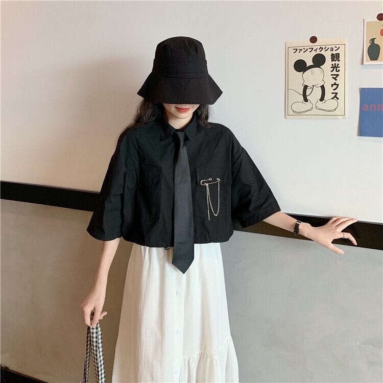 ✞ きれいめ☆ショートシャツブラウスチェーン ギャザートップス ✞ゴスロリ SM ミリ 甘ロリ クラロリ 和ロリ エレガント 黒ロリ 姫ロリ 華ロリ BB-BB4442219