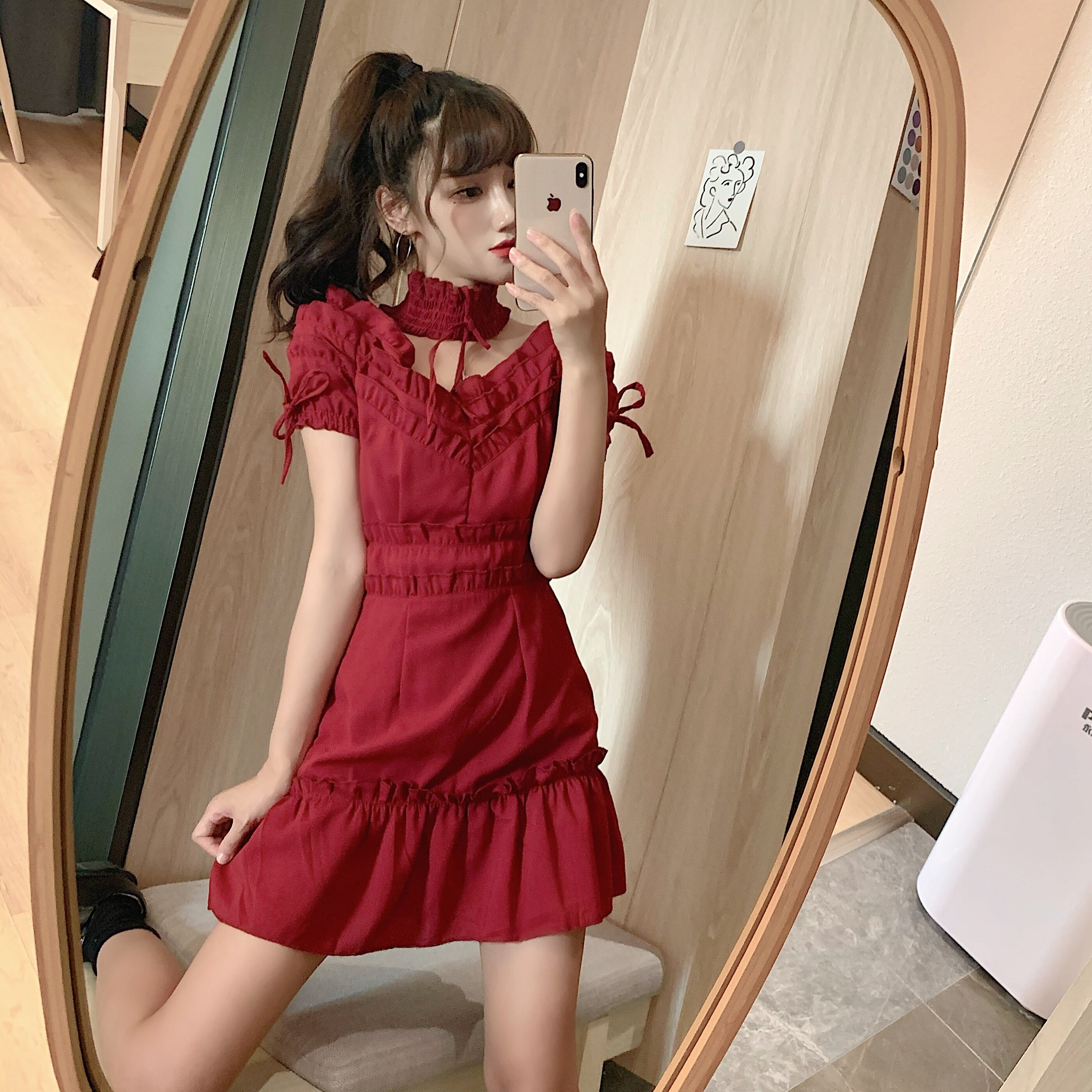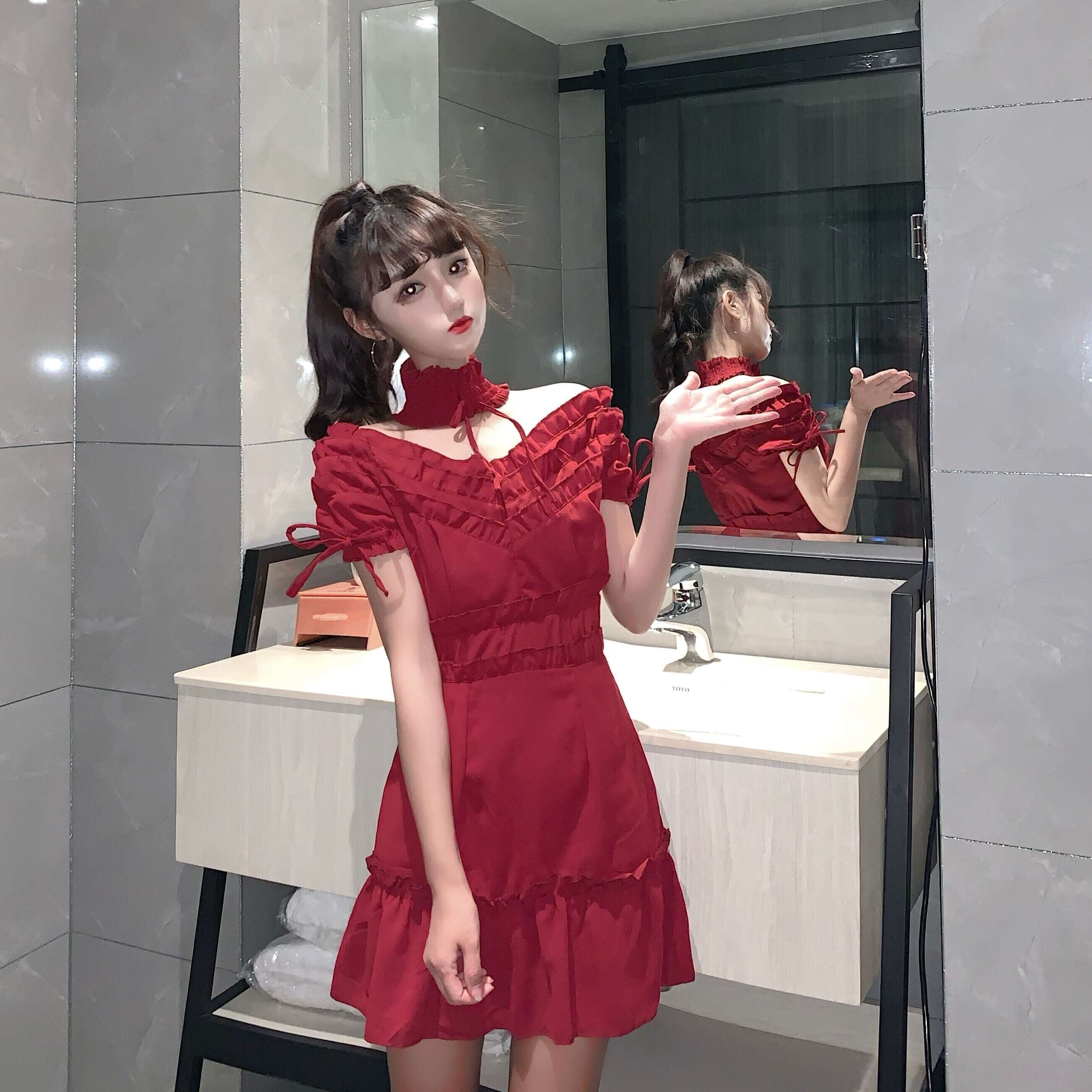 ✞ スリムラッフルスウィート肩だしフリルワンピース ステッチ ✞ゴスロリ SM ミリ 甘ロリ クラロリ 和ロリ エレガント 黒ロリ 姫ロリ 華ロリ BB-BB8370856