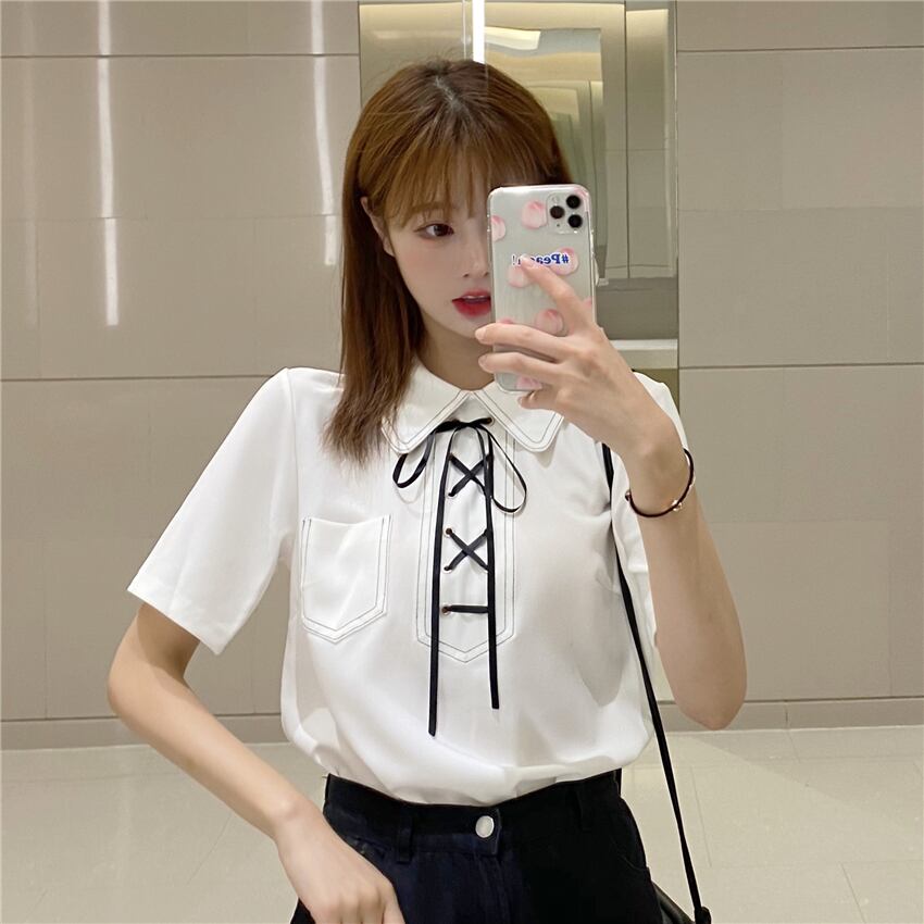 ✞ サマーきれいめ☆ポケットバンドシャツブラウストップス 大人女子☆ 夏物 ステッチ ✞ゴスロリ SM ミリ 甘ロリ クラロリ 和ロリ エレガント 黒ロリ 姫ロリ 華ロリ BB-BB0476506