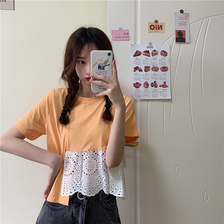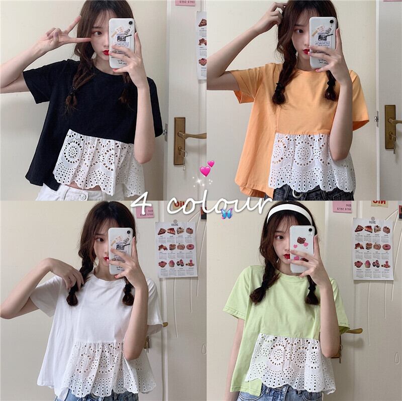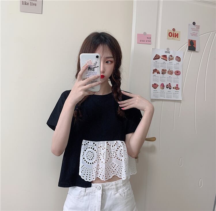 ✞ Tシャツ シャツブラウスラウンドネックレースショート大人女子☆ ステッチ ✞ゴスロリ SM ミリ 甘ロリ クラロリ 和ロリ エレガント 黒ロリ 姫ロリ 華ロリ BB-BB9506963