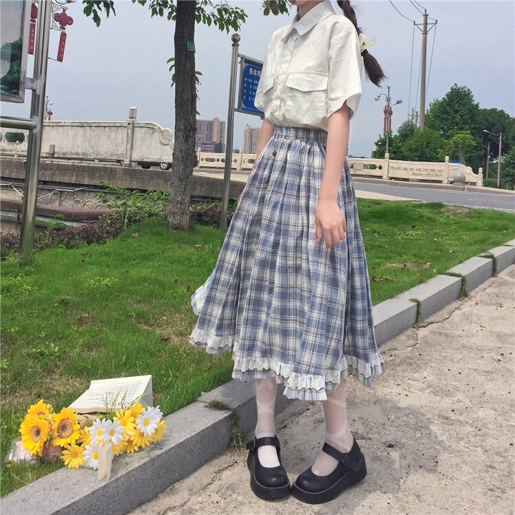✞ ストレッチ♥カワイイ♥スタンダードチェック柄レーススカート レトロ エラスティック 伸縮 ✞ゴスロリ SM ミリ 甘ロリ クラロリ 和ロリ エレガント 黒ロリ 姫ロリ 華ロリ BB-BB8484435