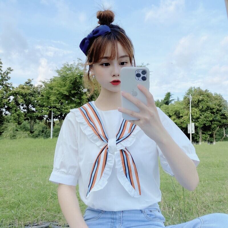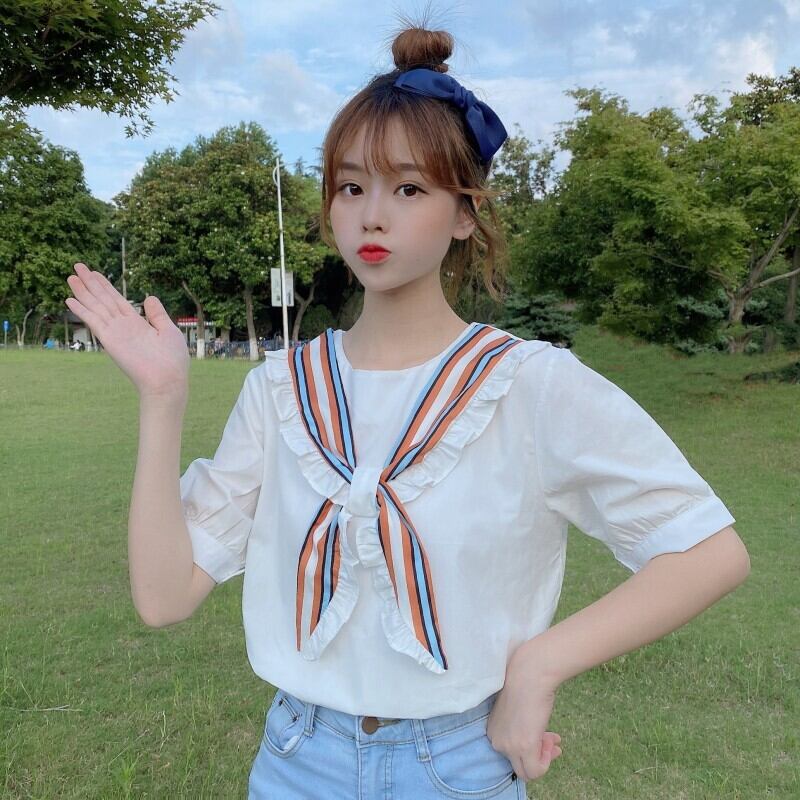 ✞ シャツブラウススタンダードストライプラウンドネックシフォン レトロ スウィート ✞ゴスロリ SM ミリ 甘ロリ クラロリ 和ロリ エレガント 黒ロリ 姫ロリ 華ロリ BB-BB1470319