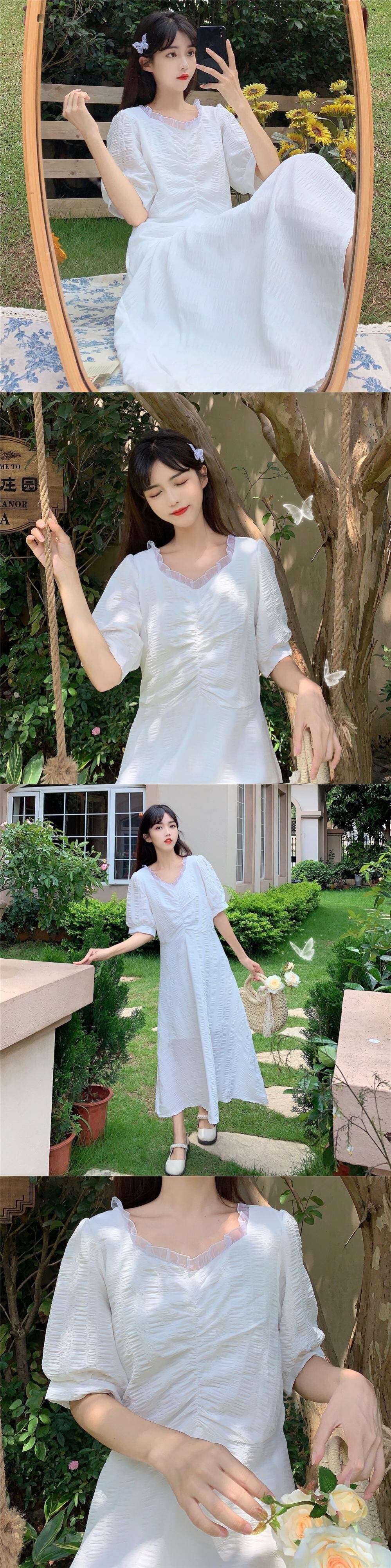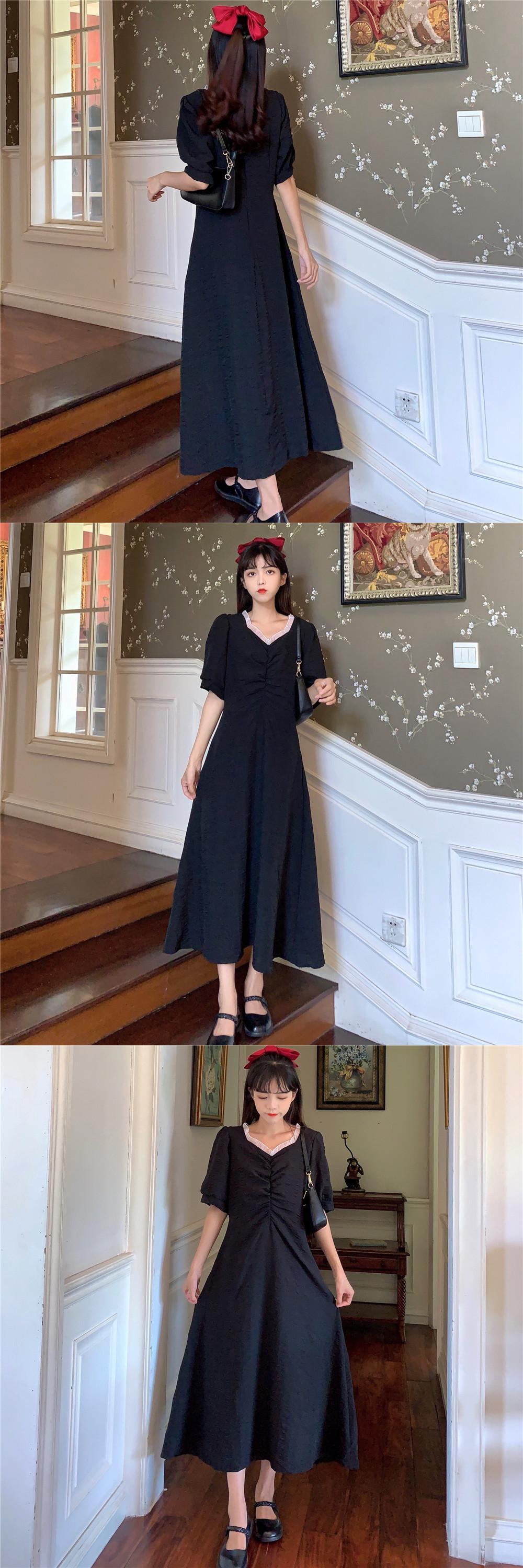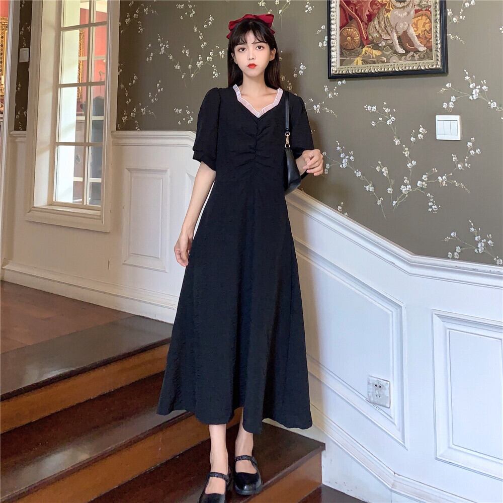 ✞ ロングスカート レースVネックスタンダード ランタンスリーブ レトロ スウィート ✞ゴスロリ SM ミリ 甘ロリ クラロリ 和ロリ エレガント 黒ロリ 姫ロリ 華ロリ BB-BB6906095